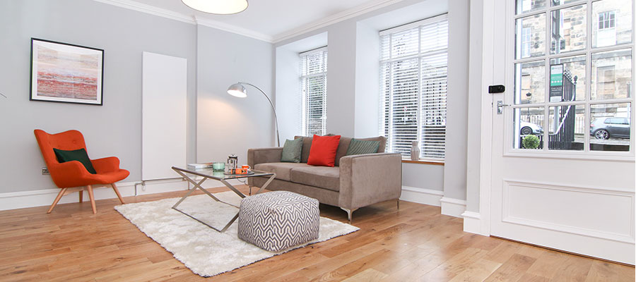 Ever wanted your own gin bar in your home? This beautiful flat in the New Town has one, along with stylish and spacious interiors.