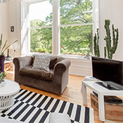 La Cave is an A listed lower ground and garden flat in Edinburgh’s New Town which carries much historical charm through its well preserved Georgian period features.