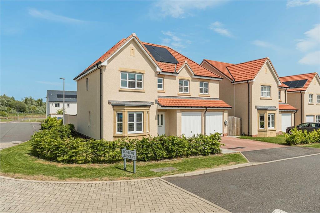 This most impressive, generously proportioned executive detached villa with attractive private gardens, driveway with EV charger and double garage, forms part of a select modern development in the popular village of Danderhall, lying on the periphery of Edinburgh/Midlothian and within easy reach of excellent amenities, reputable schooling and commuting links. The property offers excellent flexible family accommodation throughout with great potential for a garage conversion, subject to the relevant permissions being obtained. Enjoying a light and bright interior throughout, this delightful home is offered to the market in move-in condition and shall undoubtedly appeal to many. The welcoming hallway has a carpeted staircase leading to the upper landing and benefits from storage facilities. The well appointed bay-windowed sittingroom with further window to side, provides excellent natural light and opens to the sizeable rear facing dining kitchen with French doors leading to the garden. The fully integrated kitchen has ample wall and base units with complementary worktops incorporating the built-in gas hob, electric oven and hood with integrated dishwasher and fridge freezer. A useful utility room can be found off the kitchen with further storage facilities, integrated washing machine and additional access door to the garden. A two piece WC apartment is conveniently positioned on the ground floor, off the utility room. The upstairs landing has additional storage provisions including an extensively floored and insulated attic with power, accessed via Ramsay ladders. The principal, front-facing bedroom benefits from a dressing room with window together with an en-suite shower room. Double bedroom 2 is fitted with double built-in wardrobes and again enjoys the benefit of an en-suite shower room with mains shower. There are two further double bedrooms and a single bedroom/home office. Lastly the family bathroom comprises of a white three piece suite. Further benefits include gas central heating, double glazing and solar panels. The property is set of a corner plot with private gardens to the front, side and rear. The two car driveway is fitted with an EV charger and the double garage is an excellent space, fitted with power & light. Hacking & Patterson are the Factoring Agents for the development to which a fee of £100 per annum is payable for the upkeep of the communal garden grounds. Council Tax Band - F