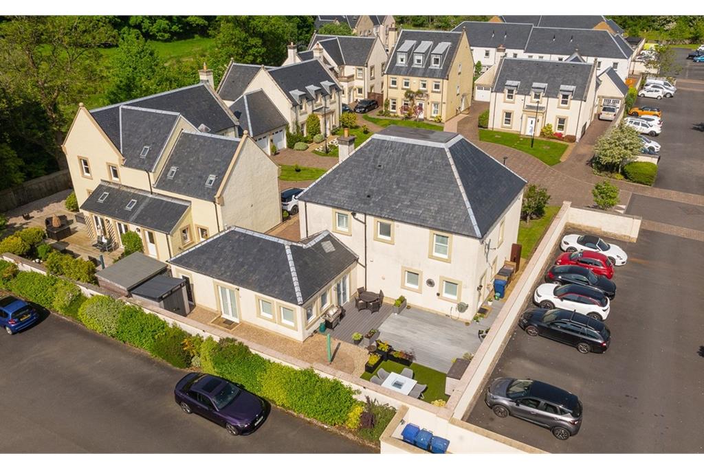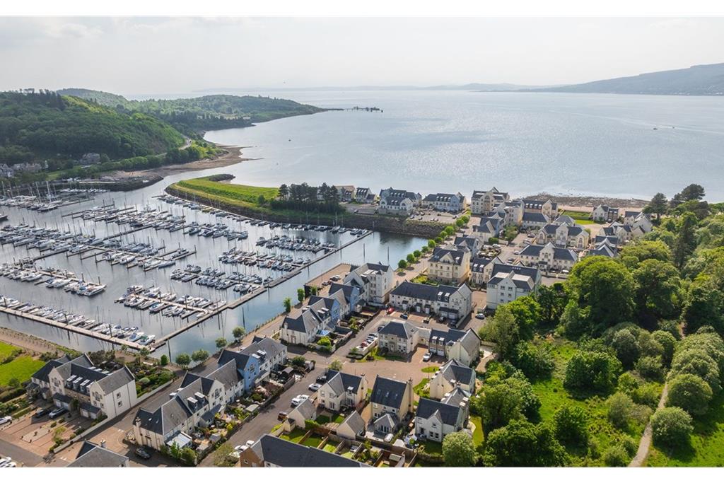 Quietly positioned in this crescent of six executive villas within the grounds of Kip Marina which offers berthing for six hundred craft in sheltered pontoon berths, 1 Hebrides Grove is a stunning contemporary home. The property has been meticulously maintained and upgraded by the current owners with great attention to detail and it is presented to the market in truly walk in condition. Kip Marina was originally completed in 1971 and expanded to make it Scotland's premier marina in the mid 1980's. The Marina features the popular 'Buckley's at the Chart Room' restaurant and bar and has easy access to the A78 main road to Greenock and Glasgow to the north. For the commuter the mainline train stations of Inverkip and Wemyss Bay have a regular direct service to Glasgow with a journey time of less than an hour. In detail the accommodation on offer comprises a broad entrance vestibule with cloakroom cupboard opening to a reception hallway. The reception hall has French door access to a formal lounge with feature split faced slate tiled wall and log effect electric fire inset to a polished limestone hearth and surround. The lounge is laid on a semi open plan basis to a modern dining kitchen fitted with a range of wall and base units with integrated gas hob with wok burner, double oven, extractor, plate warmer, dish washer, fridge/freezer. The kitchen has doorway access to a spacious utility room with Integrated washing machine, tumble drier and a second fridge freezer with doorway access to the rear garden. The kitchen leads to a beautiful split level family/living room with reverse air conditioning and a media wall incorporating a multi-colour log effect fire and two sets of UPVC French doors opening to the rear garden. An impressive home office/study with high quality bespoke fitted office furniture and a WC complete the accommodation on the ground floor. On the upper landing there are four double bedrooms all with built in wardrobe storage. The master bedroom features a fabulous ensuite bathroom with a five piece suite to include WC, his and hers wash hand basins, bath and walk in shower cubicle. Two of the bedrooms are linked to a three piece shower room on a Jack and Jill basis. A further shower room on this level completes the accommodation on offer. In addition to the above the property has double glazing, gas central heating, solid oak internal doors and facings, monobloc driveway parking to the front and landscaped front and rear gardens. The rear garden is enclosed with a well maintained wall and features several entertaining deck areas, artificial lawn and chipped area. The garage has been converted to form an excellent workshop/store with bright florescent lighting, hot and cold running water and numerous electrical outlets however this could easily be reinstated if required. There is an additional well maintained shed also with power sockets which is included in the sale.