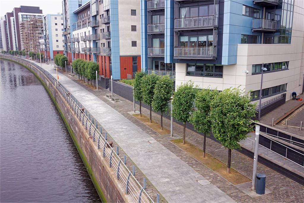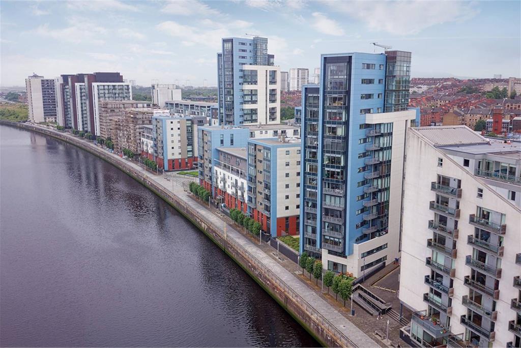 This two-bedroom fifth-floor apartment has been meticulously designed to create a spacious, low-maintenance, design-led property that oozes modern urban living. Inside, the extensive use of floor-to-ceiling glazing and the open living space makes the most of the natural light reflecting off the river. The apartment has a very bright and airy feel, with spectacular views of the West End and southside of the city, as well as the impressive banks of the Clyde. This is the perfect apartment for entertaining; the open-plan kitchen extends into the twin-aspect living space, ensuring that the chef is never far away from the party. The kitchen has a gas hob, electric oven, extractor hood, fridge freezer and dishwasher, ensuring it’s equipped for convenience and functionality. The extensive glazing in this zone makes the most of the natural light to create a modern and contemporary ambience. Spectacular views of the Clyde are available from this room, and there is ample space for a dining table and chairs for more informal dining with friends and family. For added convenience, the property has a utility room to cater for laundry requirements. There are two bedrooms in this apartment, both contain fitted wardrobes and both are bright and welcoming. The master bedroom benefits from an en-suite shower room. The main bathroom contains a white suite including a bath. The apartment is serviced by gas central heating, high-speed broadband, satellite TV and aerial sockets. Residents can also enjoy peace of mind with a door entry handset. Storage is a necessity in modern living, and the apartment has generous integral storage in the master bedroom as well as the hallway, which also contains plumbing and drainage for a washing machine, making the very best of available space. Lifestyle is highly regarded within the development, which features modern landscaped gardens. The tranquil communal gardens, on the banks of the Clyde, feature contemporary planters, providing residents with a peaceful sanctuary to appreciate all that waterside living has to offer. A parking space is provided in the secure underground car parking area. Early viewing is advised. Electricity Supply: SP Energy Networks Water Supply: Scottish Water Sewerage: Scottish Water Broadband / Mobile Coverage: Full 4G coverage, limited 3G and 5G.