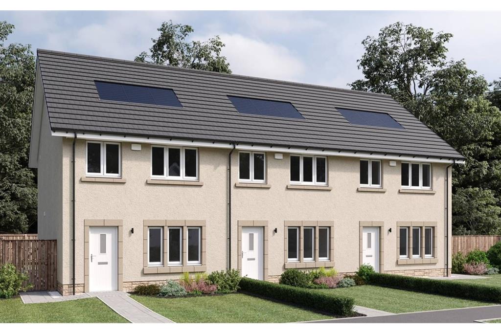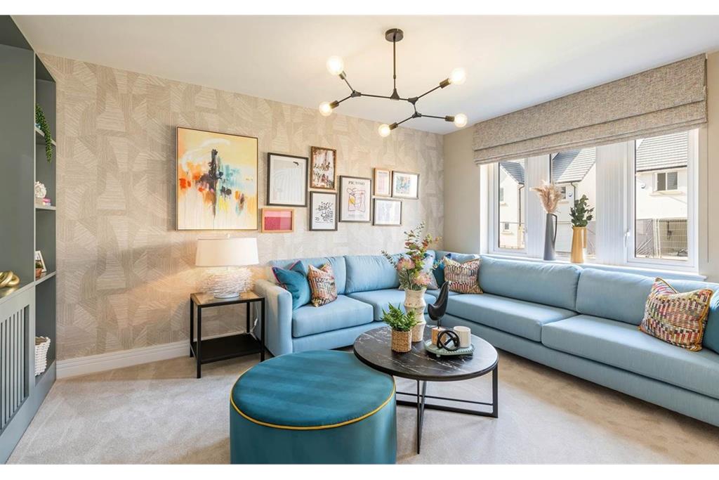 This sophisticated home provides the ideal in flexible family living space. The modern studio-designed kitchen and family/dining area is open plan, enjoying access to the patio and rear garden via French doors, allowing you to extend you living on a sunny day or when friends are round. Downstairs you also enjoy a separate (yet interconnecting) lounge, downstairs WC, excellent storage and welcoming vestibule, while on the first floor you’ll be greeted by a spacious upper landing, off which find two double bedrooms and a single (perfect as a home office, nursery or hobby room), all enjoying fitted wardrobes. The Allan’s light and airy ambience is complemented with a high specification family bathroom. *Images are for illustrative purposes and layouts may vary depending on the individual plot* Service charge - £131.74 per annum