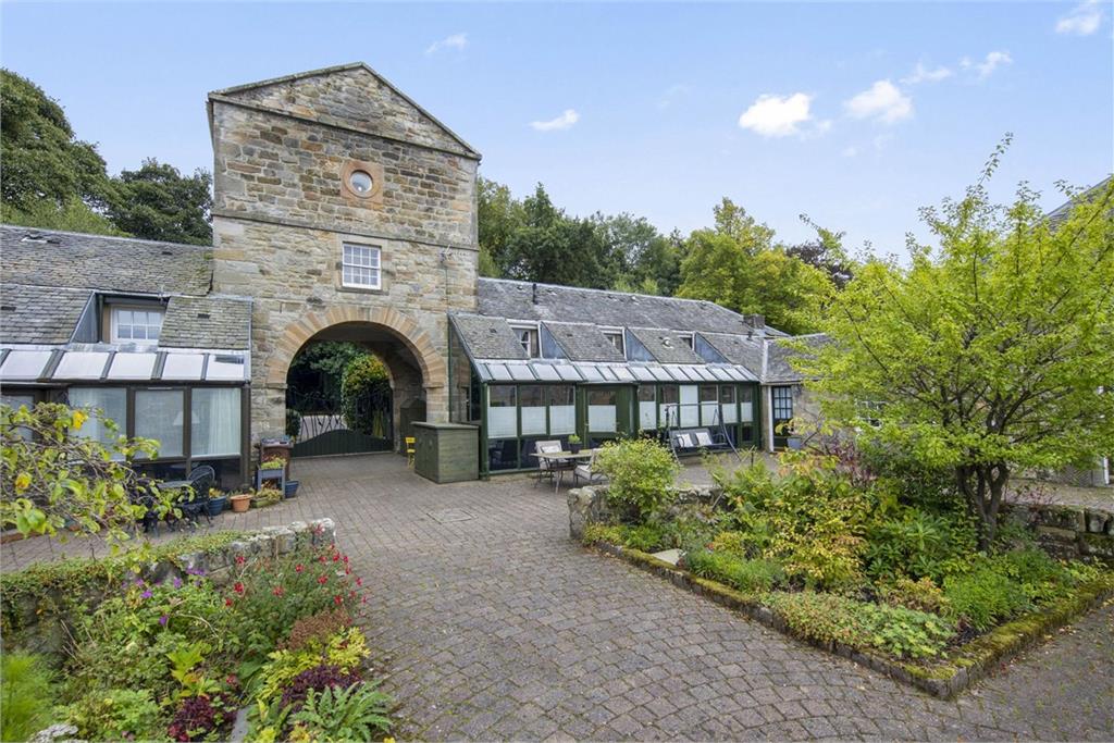 Seldom available and beautifully presented steading conversion situated within a prestigious courtyard development in the conservation village of Mid Calder. Set over three levels, the property retains it's charm and effortlessly blends many original features, including sandstone pillars and archways, with contemporary modern living and comprises of an entrance vestibule, hall with study area, fantastic sitting/dining room which allows an abundance of natural light and is open plan to the contemporary dining kitchen, with feature island and wall to wall windows with door providing access to the communal courtyard. The staircase from the sitting room provides access to a double bedroom and shower room, with a further staircase off the hallway providing access to two double bedrooms, one of which is located in the tower, and family bathroom. The property further benefits from gas central heating and externally, a private garden, lovely fully enclosed landscaped communal courtyard, and two allocated parking spaces. Features include; charming steading conversion, sitting/dining room open plan to kitchen, modern dining kitchen with central island, bright dual aspect , principal bedroom, two further bedrooms, bathroom with electric shower over bath with vanity sink unit, shower room, gas central heating, private garden, attractive landscaped courtyard, two allocated parking spaces