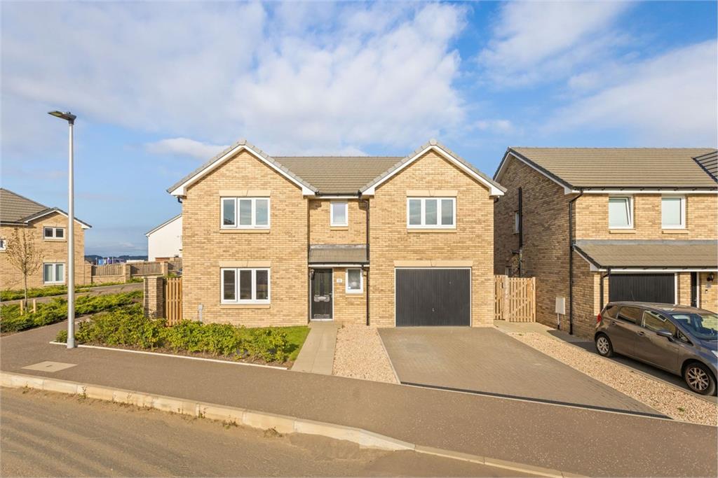 12 Berry Drive is an immaculately presented, 5 bedroom detached house forming part of an exclusive residential development built circa 2023. The impressive accomodation offers a flexible layout in move-in condition and comprises: welcoming entrance hall with understair cupboard and WC off; well proportioned living room with double doors leading through to dining room; bright and spacious dining kitchen, with integrated appliances and French doors leading to rear garden; useful utility room with access to rear garden and cupboard off; carpeted stair to upper landing with cupboard off; generous double bedroom one with built-in wardrobe and ensuite shower room; double bedroom 2 with ensuite shower room; rear facing double bedrooms 3 & 4; bedroom 5 / home office and contemporary bathroom with four piece suite. Further benefits include: gas central heating; double glazing; low maintenance front garden; drive-way with garage; enclosed rear garden laid to lawn; unrestricted street parking excellent local amenities and great transport links. Early viewing is highly recommended.