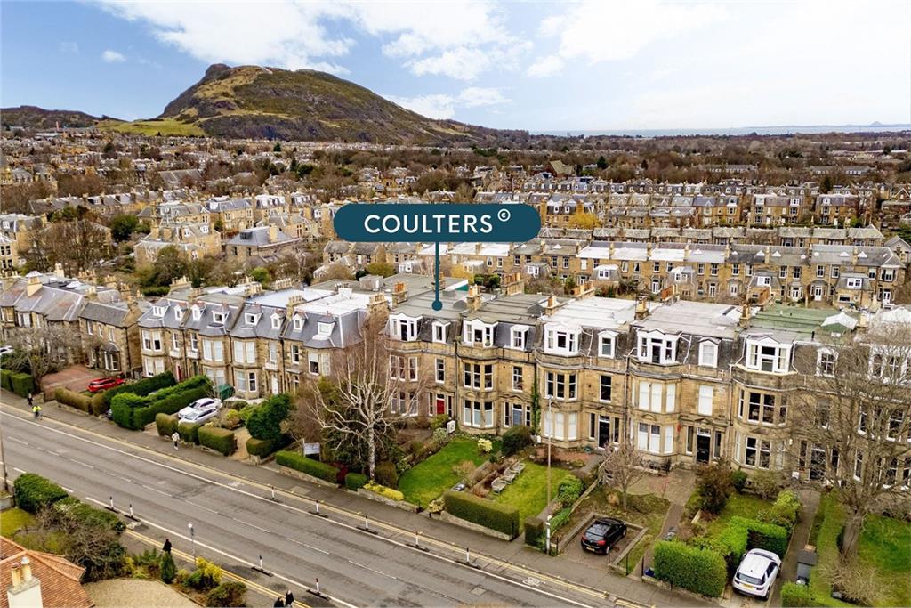 Occupying the first floor of an impressive, end terraced sandstone villa, this is a classically proportioned, and light-filled apartment in Edinburgh's highly desirable Southside . With high ceilings and retaining fine period details, this is a charming and spacious property that comes with the added, and highly rare benefit of also having two garages. Close to The Meadows, Morningside, and The University of Edinburgh it presents a wonderful opportunity for a desirable home or investment. The property is accessed via a secure communal stair and opens into a welcoming hallway with a built-in storage cupboard. The spacious sitting room enjoys a bright south easterly aspect, featuring an attractive bay window, high ceilings, and elegant period detailing. From the bay, there are distant views of Edinburgh Castle and the Scott Monument, adding to the charm of the space. A modern kitchen sits off the hall, fitted with shaker-style cabinetry and integrated appliances. Two generous double bedrooms to the rear, benefit from stunning views of Arthur's Seat and the principal bedroom also has a built-in wardrobe for convenience. A third bedroom is situated to the front of the home. A contemporary shower room, complete with walk-in shower, stylish tiling, wash hand basin with vanity, WC and chrome heated towel rail completes the accommodation. The property is fitted with gas central heating and double glazing. There are two adjoining garages situated to the rear of the property. Both have light and power installed and offer a fantastic opportunity for secure housing of cars, additional storage or workshop space. A mixture of permit and unrestricted on-street parking is available on the surrounding streets. Location South of the city, the much sought after residential district of Newington is directly bounded by the Grange and only minutes from Blackford Hill, the Hermitage of Braid and several golf courses. The property forms part of the Craigmillar Park conservation area and is situated within easy reach of a broad range of eclectic shops, restaurants, coffee shops and Cameron Toll Shopping Centre. It is popular with young professionals working in the city and students as King's Buildings along with other Edinburgh University complexes are close by. Regular public transport services operate to and from the City Centre and the Royal Infirmary. Ready access can be gained to other main roads leading to the City By-pass. The property is in the School Catchment Area for Sciennes Primary School, St Peter's RC Primary School, James Gillespie's High School and St Thomas of Aquin's RC High School. Private School options such as George Heriots, George Watson's College and Merchiston Castle are within easy reach. Edinburgh University's Kings Building is conveniently located within easy walking distance. Extras All blinds, light fittings, fitted flooring and integrated appliances are included in the sale price.