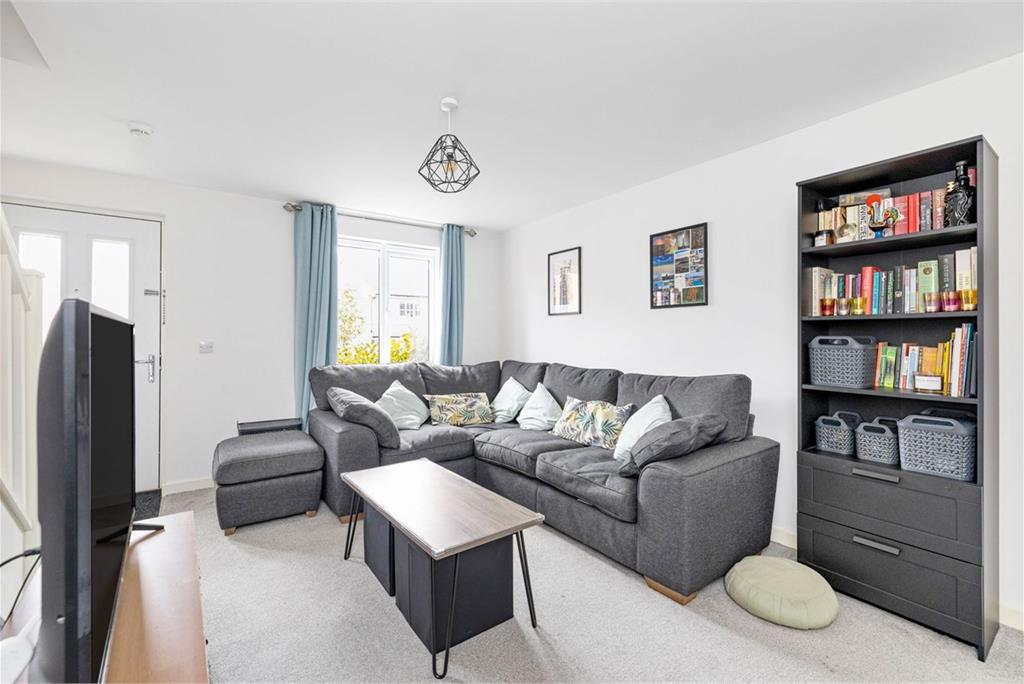 Set in the heart of a modern, manicured cul-de-sac, moments from excellent amenities, quick transport links and vast open green spaces is this immaculately presented two-bedroom, terraced house. Boasting a private rear garden, on-street parking, gas central heating and double glazing this property would make an ideal buy in a tranquil, yet well-connected location. The accommodation comprises a welcoming entrance hallway, a bright living room with storage cupboard, a stylish modern kitchen with attractive units and access outside. The kitchen currently comprises a dining area, washing machine, gas hob, oven, fan and fridge/freezer. There is also a utility cupboard and downstairs WC with the boiler and tumble dryer. Upstairs the property enjoys two well-proportioned bedrooms and completing the accommodation is the bathroom with shower over the bath. Externally the fully enclosed rear garden is laid to lawn, has a patio and raised bed. • Modern terraced house in quiet cul-de-sac • Private rear garden and on-street parking • Welcoming hallway • Bright living room • Modern kitchen with garden access • Two well-proportioned bedrooms • Stylish bathroom • Gas central heating and double glazing • Solar Panels Energy Rating B, Council Tax D