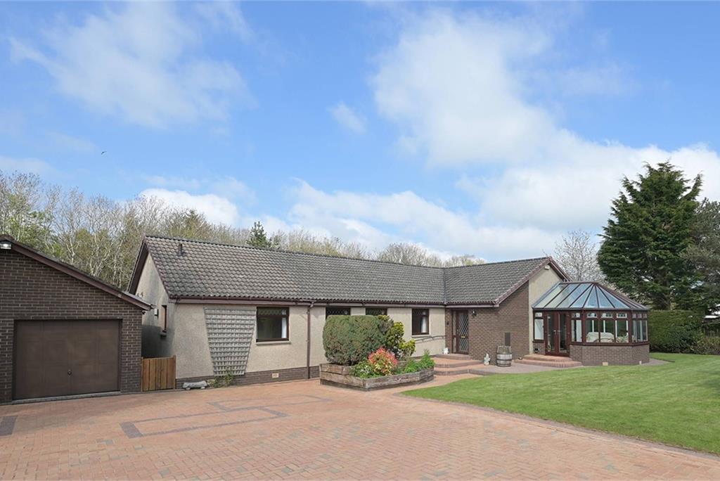 Set in a tranquil, picturesque location just outside the charming village of Kirknewton, this impressive four-bedroom detached bungalow sits on a substantial, beautifully landscaped plot, offering peace, privacy, and exceptional living space both inside and out. Step through the front door into a wide, welcoming hallway that sets the tone for the spacious interior. To the right, double doors open into the expansive living room, where natural light pours in through the adjoining conservatory. A cosy log burner adds a warm focal point, making this an ideal space for family gatherings or peaceful evenings. The conservatory, accessed via further double doors, offers panoramic 180-degree views over the meticulously maintained gardens and rolling countryside beyond, a serene setting for relaxing or entertaining. Moving back through the house, you'll find the large, well-equipped kitchen. Complete with a gas hob, integrated oven, dishwasher and provision for integrated fridge and freezer, the kitchen also boasts extensive countertop and storage space, along with plenty of room for a full dining suite, perfect for family meals or social occasions. Off the kitchen is a handy utility room with space for a washing machine and access to the garden. A second public room, currently arranged as a cosy family room, offers a more intimate retreat and leads into a generous rear extension. This versatile space is currently used as a dining room with garden views and also includes a home office and a fourth double bedroom with en suite, ideal for guests, multigenerational living, or as a potential self-contained granny flat, with the office space easily convertible into a kitchen. Elsewhere in the home are three additional well-proportioned double bedrooms. Two of these benefit from en-suite facilities, while the principal bedroom also includes a spacious walk-in wardrobe. A centrally located family bathroom completes the internal accommodation. Externally, the property continues to impress. A large detached garage offers excellent storage or development potential, having previously secured planning permission for conversion into additional living space. The gated driveway provides ample parking, and the gardens—both front and rear—are a true standout feature, beautifully landscaped with ponds, bridge, a treehouse, a garden hut, a custom-built greenhouse, summerhouse and mature hedges creating a magical outdoor environment. This exceptional home combines generous internal accommodation with outstanding outdoor space in a stunning rural setting, offering a rare opportunity for spacious, flexible countryside living just minutes from Kirknewton. Electricity Supply: SP Energy Networks Water Supply: Scottish Water Sewerage: Scottish Water Broadband / Mobile Coverage: Full 4G coverage, limited 3G and 5G.