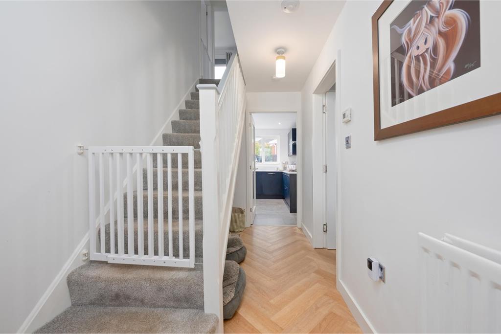 Enviably positioned within a generous corner plot is this stylish family home with contemporary and modern fixtures and fittings throughout. The property is offered in lovely move in condition and is a short walk from Tesco Superstore, schooling and Retail Park. There are landscaped gardens that are fully enclosed providing a child and pet safe environment with lawn and patio sections, an excellent home for entertaining and easy to maintain. The accommodation briefly comprises entrance hall, lounge leading through to dining room with patio doors to garden, fitted kitchen, separate utility room and w.c facilities. On the upper level there are four bedrooms with master en-suite and bathroom with overhead off mains shower. Access to attic. A double tarmac driveway leads to the garage which is used as an office/store room. This can be easily converted back to a garage. The property is double glazed with gas central heating.