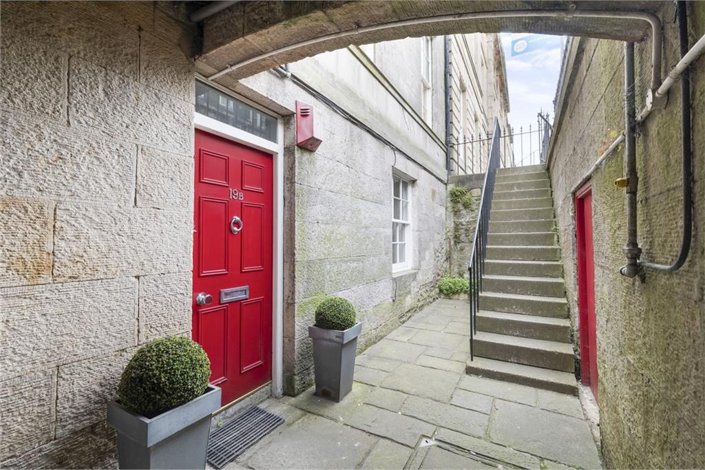 Set within a listed Georgian tenement in Edinburgh's New Town conservation area, this two-bedroom garden flat offers a highly sought-after city centre address. Just a stone's throw from bustling Broughton Street and set within walking distance of the airport tram line which also provides easy access to popular Leith, The Shore and Ocean Terminal shopping centre. In addition, the property is conveniently situated within minutes of St James Centre playing host to a variety of restaurants, shops and bars as well as Waverley train station. The flat's tasteful neutral interiors include two double bedrooms, a versatile box room, and two modern shower rooms, one of which is en-suite. There is also a spacious living room and a stylish, south-facing dining kitchen. There are paved and decked gardens for exclusive use, directly accessible from the property. One boasts a versatile wooden deck and the other houses cellar storage. For further storage capacity, there is also access to a third communal cellar. Parking on Forth Street is controlled (under Zone 2) to ensure priority for its residents. Extras: All fitted floor and window coverings, and light fittings will be included in the sale.