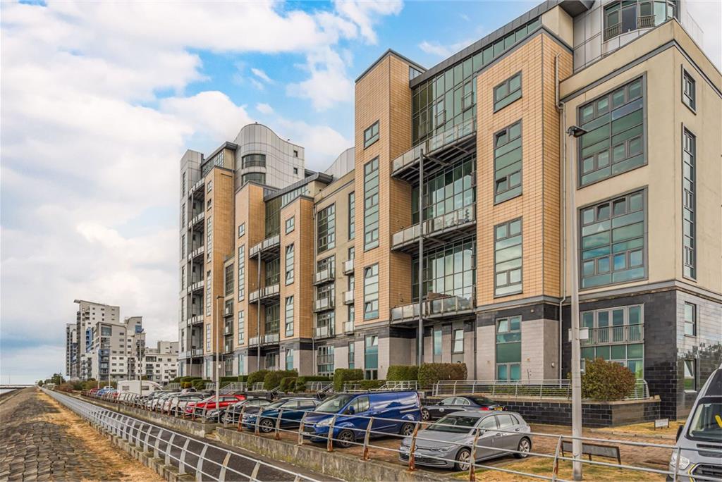 Set on the fourth floor of an exclusive, factored waterfront development, this stunning two-bedroom apartment offers pristine interiors, breathtaking uninterrupted views over the Firth of Forth, and balconies on two elevations. Positioned in a highly sought-after location, the property enjoys a peaceful setting within easy reach of excellent local amenities, the vibrant Shore district, and the newly completed tram extension, offering quick and easy access to the city centre and beyond. This superbly presented home is in true move-in condition, boasting a spacious, light-filled interior finished to an exceptional standard with contemporary fittings and tasteful décor throughout. The generous open-plan living space is a standout feature, with French doors in the lounge area opening onto a balcony that showcases panoramic views of the Forth Estuary, including the iconic Forth Bridges and the Fife Hills beyond. The stylish kitchen is fitted with sleek grey gloss cabinetry, striking granite worktops, and glass splashbacks, and comes fully equipped with a comprehensive range of integrated appliances. The kitchen seamlessly connects to a designated dining area, which leads to a sizeable balcony overlooking the beautifully landscaped communal courtyard gardens at the heart of the development. Both double bedrooms offer built-in wardrobe storage, with the principal bedroom benefiting from a luxurious en-suite shower room, fully tiled and featuring a large shower enclosure. A recently upgraded main bathroom adds further appeal, featuring a freestanding bath, separate walk-in shower, and chic black fixtures and fittings for a sophisticated, modern finish. The development is maintained by the factor, James Gibb, 4 Atholl Place, Edinburgh EH3 8HT. The deposit is £300, and the charges are approximately £191 per month. Council Tax Band - F