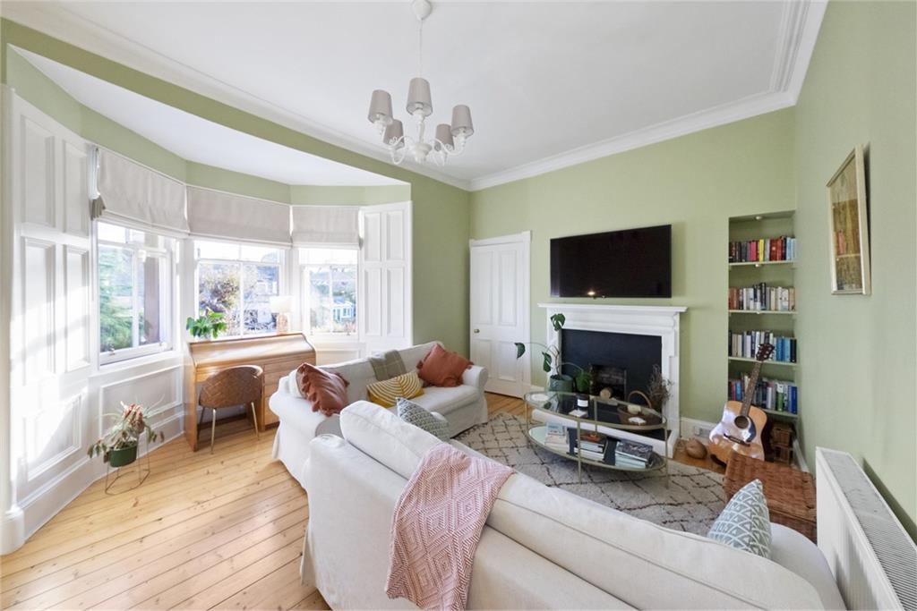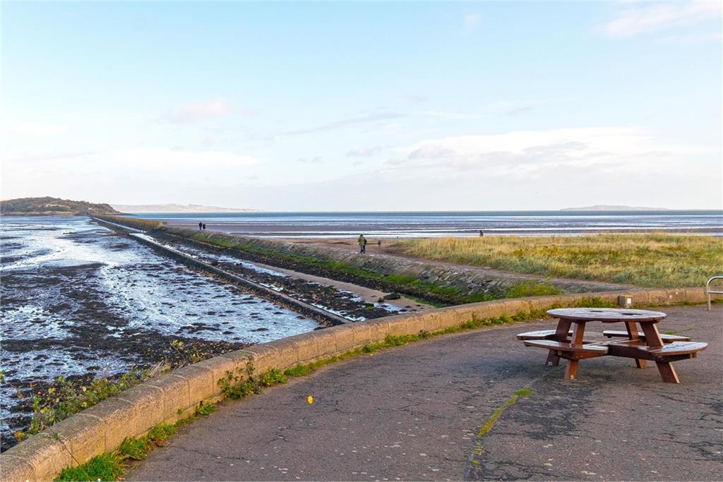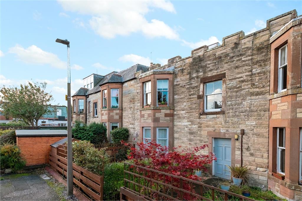 This is a delightfully presented, bright upper flat offering original features throughout. The property is situated within the Cramond area of the city and is within close proximity to Cramond village and Cramond beach offering delightful walks. Bruntsfield and Royal Burgess Golf Courses are close to hand. A bus connection to the city centre is within a short walk from the property. The property is entered via a security door to the front where a staircase leads to the upper level and a door leads into the property. The delightful bright lounge offers a Bay window to the front, feature fireplace and surround. Gas connection close to hand. Storage press. The dining kitchen offers an area to dine with window to the rear. Grey fitted base and wall units with wood work surfaces, electric oven, hob and extractor above. Display shelf. Separate area from the kitchen offering stainless steel sink and drainer. Grey base and wall units, light coloured worksurfaces, integral fridge freezer, washing machine and dishwasher. Window to the rear. Storage press and cupboard housing the central heating boiler. The bathroom is fitted with a bath, over bath mixer shower with rain shower head. Sink set within vanity unit with storage below and W.C. Skylight window filtering through natural light. To the front there is an area of garden laid to lawn, chipped area and flower border. Timber garden shed. There is communal parking adjacent to the property.