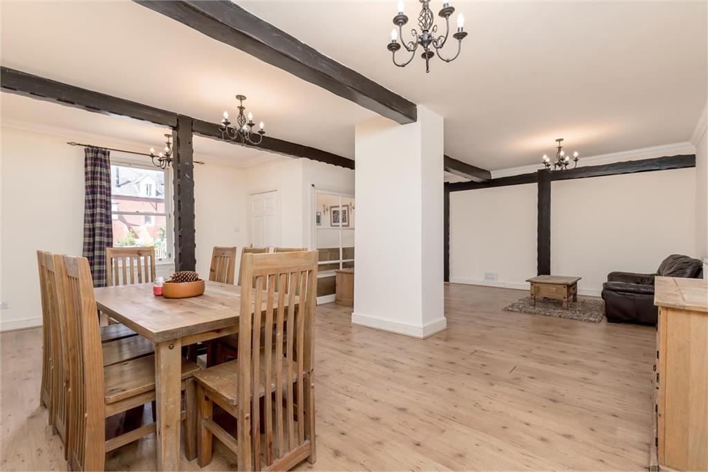 With its west-facing aspect, this welcoming space is filled with plentiful natural light. Exposed beams, wood-effect flooring, and a soft neutral décor contribute to a relaxed atmosphere whilst the versatile layout allows for a variety of furniture arrangements, making it ideal for everyday living and entertaining