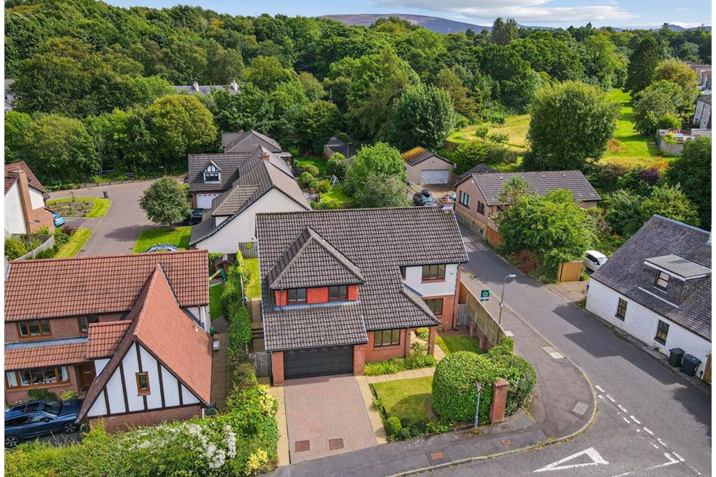 *New offers over price* This beautifully presented detached villa of traditional construction occupies a sizeable mature plot near the entrance to an exclusive no-through development comprising only high calibre properties. It boasts a particularly flexible layout (213 sqm including garage) complete with excellent storage and will easily adapt to meet the ever-changing needs of modern family life. Built by Cala in 1999, the property has been extensively upgraded, freshly decorated throughout and recarpeted in recent months so is now in true’ move-in ‘condition. There is a most welcoming and airy reception hall offering ample space for furniture, a spindled staircase rising to the galleried upper hall and useful cloaks cupboard. The comfortable 20 feet-long sitting room enjoys a twin aspect whilst a fuel-effect gas fire with marble surround creates an attractive focal point. A separate formal dining room is equally suitable for use as a family/living room and directly connects to the kitchen. An impressive well-fitted kitchen/breakfast room includes integrated appliances and gives access to the utility room and rear garden. Also positioned on the ground floor is a versatile study/home office/6th bedroom and a toilet compartment (with white W.C. and wash-hand basin). The master bedroom enjoys the luxury of a particularly large and bright en suite bathroom (also with shower cubicle). There are 4 further double bedrooms and the generously proportioned fitted family bathroom also featuring a step-in shower cubicle. New spotlights have been fitted in the kitchen and bathrooms, the electrics have been upgraded and there a charge point for electric vehicles has been fitted (but not connected). The attic has been newly floored and a new extending ladder provided. The property benefits from gas central heating and timber framed double glazing throughout. The open plan front garden provides a large paviour driveway providing parking for several cars and access to the double garage. There is a substantial, fully fenced rear garden which is mainly laid to lawn and with a large patio for al fresco dining. Balerno is a much admired village which has an historic central conservation ‘heart’ and a surprisingly rural feel being attractively located amidst truly unspoiled countryside which forms a gateway to the Pentland Hills. It has some local shops, highly regarded senior high school, primary school, library and a farmers’ market offering local produce. A wealth of countryside pursuits abound including horse riding, walking, golf, riding and fishing whilst nearby is The Oriam (National Performance Centre for Sport). This popular residential location straddles the A70 and has evolved into a popular commuter base being only 8 miles from the centre of Edinburgh and a short drive away from motorway networks and the City By-pass (3 miles). Excellent bus services operate and the delightful ‘Water of Leith Walkway’ provides a tranquil route into the City Centre and even down to the Waterfront of Leith. The property has been valued by surveyors at £800,000 and the Home Report is also available from the ESPC web site. The property lies in Council Tax band G and has a C rated Energy Performance certificate. The sale price includes fitted carpets (All brand new), the double oven, hob and hood and fridge/freezer. By appointment telephone Agents on 0131 229 3399 (0759 58 20611 out with office hours)