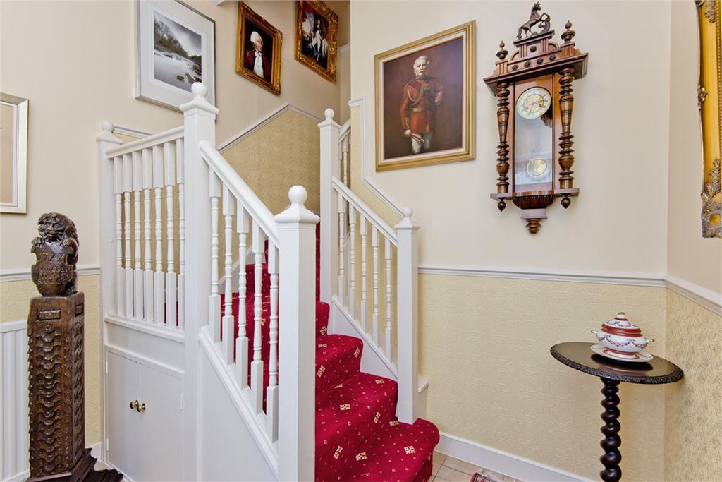 Nestled in one of St Andrews' most sought-after residential areas, this elegant main-door apartment spans two levels of an impressive period property. Set within tranquil, well-maintained grounds, it includes a private garage, additional designated parking, and a private south-facing garden. This expansive family home boasts five double bedrooms, two sun-filled reception rooms, a well-appointed breakfasting kitchen, two bathrooms, a third WC, a utility room, and ample built-in storage. A short car or bus journey takes you to the town's central shops, renowned high school and university, world-class golfing, and scenic beaches, while a primary school is conveniently within walking distance. Generous double-upper apartment - exclusive address in coastal St Andrews This five-bedroom, two-bathroom main-door apartment is set over two levels within a late 19th-century Arts and Crafts property. Located in an exclusive residential community just over a mile from the historic town centre, it combines classical charm with modern functionality, making it a superb choice for families. With private access to plentiful parking and a south-facing garden, the property boasts significant appeal. Two sun-filled reception rooms - offering picturesque garden views The private main-door entrance opens into a vestibule with storage and durable tiled flooring, leading to a comfortably carpeted first-floor hall with a walk-in store and a convenient WC. The hall opens into two southeast-facing reception rooms with lovely garden views. The generous, carpeted living room, brightened by a sweeping bay window, is a characterful retreat featuring rich rust-red decor, an elegant fireplace with a (currently disabled) living-flame fire, and useful hidden storage. Next door, the carpeted formal dining room is perfect for entertaining, with ample space for an eight-seater table. Well-appointed kitchen - featuring a casual dining area The bright kitchen includes a breakfasting area and boasts a tasteful classical design, with Prussian blue accents complementing downlit cream cabinets. It offers plentiful storage and generous workspace integrated with a fridge, a freezer, an electric oven, and a hob. There is also an under-counter dishwasher, and, in a modern, well-illuminated utility room off the hall, a freestanding washing machine and tumble dryer, along with extra storage. A luxury principal suite with fitted wardrobes and a four-piece bathroom The principal suite on the first floor features a carpeted, dual-aspect bedroom (currently a study) with serene garden views and stylish chequered carpeting, complemented by fitted wardrobes and a well-appointed bathroom with a WC suite, bath, and separate shower enclosure. Four additional double bedrooms - all benefiting from storage The remaining bedrooms, all carpeted doubles with good built-in storage, include one on the first floor and three on the second. One second-floor bedroom showcases exquisite Morris & Co. wallpaper, reflecting the home's Arts and Crafts heritage. Multiple washroom conveniences - enhancing family appeal In addition to the light and airy bathroom in the principal suite, there is a handy WC cloakroom off the hall and a family bathroom on the second floor. The WC is beautifully framed by Morris & Co. wallpaper, and the bathroom features a toilet, a pedestal basin, and a bathtub. Private south-facing garden, a garage, and designated parking Two designated parking spaces, a detached single garage, and an attractive south-facing garden are within the well-maintained grounds for private use by the property. The garden is easy to manage, with a small lawn and a gravelled seating area bordered by plants. Extras: The sale includes fitted flooring, selected window coverings, light fittings, and the integrated/freestanding appliances. Note: the fitted bookcases in the study/principal bedroom are not included. Area St Andrews, Fife World-renowned for its ancient university, golfing heritage and stunning beach, St Andrews attracts more than half a million visitors each year, and is regarded as one of the finest towns and best places to live in Scotland. Characterised by its narrow cobbled streets and beautiful architecture, the bustling town centre hosts a charming blend of independent shops and high-street retailers, plus diverse cafes, coffee shops, delis, greengrocers, butchers and bakeries. There are also several large supermarkets on the outskirts of the town. St Andrews enjoys international fame as 'The Home of Golf' - the game has been played at St Andrews Links for over 600 years, and the iconic Old Course draws thousands of professionals, amateurs and spectators from across the globe. Other tourist attractions include the 12th and 13th-century ruins of St Andrews Cathedral and St Andrews Castle, as well as St Andrews Botanic Garden.