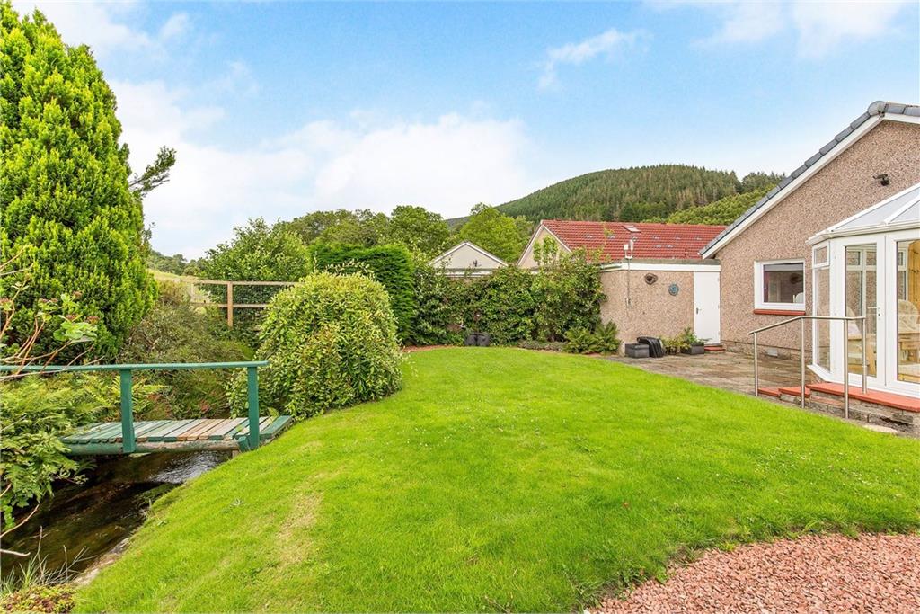 Welcome to 20 Nursery Park, Innerleithen Set within a quiet cul-de-sac in Innerleithen and surrounded by the picturesque hills, this detached bungalow offers easily manageable single-storey accommodation, including three bedrooms, two reception rooms, a breakfasting kitchen, a shower room, and a separate WC. Externally, it is accompanied by lovely front and rear gardens, an attached single garage, and a private driveway. Although the home would benefit from a degree of modernisation, it offers the new owner an exciting blank canvas to put their own stamp on. Take A Look Around The main door is tucked to the side of the property and opens into an entrance vestibule with built-in storage, flowing through to a hallway with a WC. To the left of the hall lies a generous reception room, spanning the entire width of the property and offering excellent flexibility for arrangements of lounge and dining furniture. The room is filled with natural light through a large front-facing window and features a homely fireplace. In the neighbouring kitchen, which has garden access, wall and base cabinets are accompanied by spacious worktops and splashback tiling, whilst an oven and hob are integrated. Provision is also made for undercounter appliances, and a fitted table creates the perfect space for morning coffee and casual meals. The home’s three bedrooms are well-proportioned and accompanied by excellent built-in/fitted storage, with the principal also featuring French doors opening into an adjoining conservatory – a flexible space (with garden access) that can be used in a number of ways by the new owner. Finally, a shower room completes the accommodation on offer and comprises a walk-in enclosure, a basin set into a vanity unit, a WC, and a storage cupboard. The home is kept warm by a gas central heating system and benefits from double-glazed windows. Tour The Grounds Externally, the property is supplemented by a predominantly lawned front garden with leafy shrubbery, and a mature rear garden with a spacious lawn, a patio, and a charming bridge leading across the river to a section with mature trees and shrubbery. Excellent private parking is provided by an attached single garage and a multi-car driveway. The Details All fitted floor coverings, window coverings, light fittings, and integrated kitchen appliances will be included in the sale. The freestanding kitchen appliances can also be included if desired, and some furniture is available by separate negotiation. The sale of this property is not subject to an onward chain. Tell Us About Innerleithen Lying close to the banks of the River Tweed and nestled amongst rolling hills, the former mill and spa town of Innerleithen enjoys an idyllic Scottish Borders setting. The town is served by a local supermarket, a library contact centre, a health centre, a pharmacy, a post office and several independent shops, including bakeries and a butcher. A selection of eateries is also on offer, whilst further amenities can be found a short drive away in the charming market town of Peebles. The town’s scenic surroundings provide endless opportunities for outdoor pursuits such as fishing, walking and cycling, while nearby Glentress Forest Park boasts a treetop adventure course. Innerleithen also hosts its own park and a local history museum at St Ronan's Wells. Primary and nursery schooling is provided locally at St Ronan’s Primary School, followed by secondary education at Peebles High School. Commuting to the capital takes approximately an hour by road, whilst Galashiels – located 20 minutes’ drive from Innerleithen – provides fast and frequent rail connections as part of the Borders Railway.
