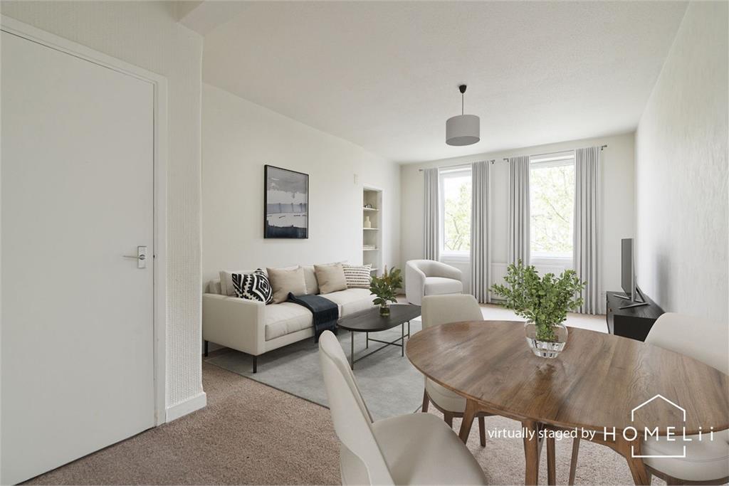 A fantastic opportunity has arisen to purchase this spacious, first floor flat, quietly situated within a popular residential district. The property would make an ideal family home or buy to let investment with benefits including gas central heating, double glazing, and ample unrestricted on-street parking. The accommodation in brief comprises; welcoming hallway with useful storage, spacious and bright twin windowed reception/dining room, fitted kitchen with a range of base and wall mounted units and appliances, generously proportioned principal bedroom with fitted wardrobes, two further good sized double bedrooms and bathroom with three-piece suite and electric shower over bath. This property has been subject to virtual staging to show the effect of makeover on the property. It should be noted that the property is currently empty as per the “before” images which have also been uploaded for perusal. There is a communal drying green to the rear of the property and ample on-street parking to the front and surrounding area. Council Tax Band - B