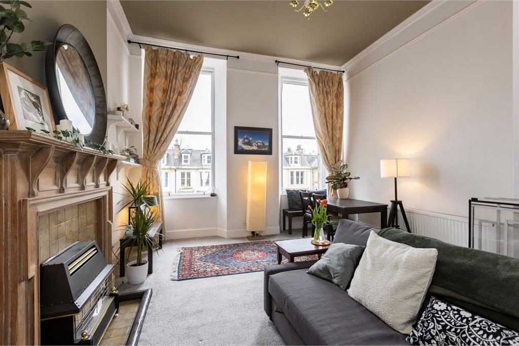 Beautifully presented dual aspect first floor flat with two bedrooms forming part of a traditional building, situated in the sought-after thriving area of Newington close to excellent local amenities and the City Centre. With only two other properties within the building, this seldom available bright and well-proportioned property offers comfortable and well-planned accommodation, in good condition with great storage throughout. The spacious living room is particularly attractive and complemented by the twin windows that fills the property with natural light, the elegant original corning and stylish gas fire and fireplace. The fitted kitchen currently has a breakfast bar, fridge/freezer, 5 ring gas hob, oven and fan, washing machine and utility cupboard with tumble dryer and the boiler. There are two well-proportioned bedrooms, one with a mezzanine bed and both with views of Arthur’s seat. Completing the accommodation is the bathroom with shower over the bath. The property also benefits from secure entry, permit parking and gas central heating. This superb property located in an excellent, sought-after location as well as the great schools within the catchment will appeal to a range of buyers, so early viewing is highly recommended. Total Floor Area 70m² The fridge freezer, washing machine, tumble dryer and cooker as well as all blinds and curtains will be included in the sale. EPC Rating D.