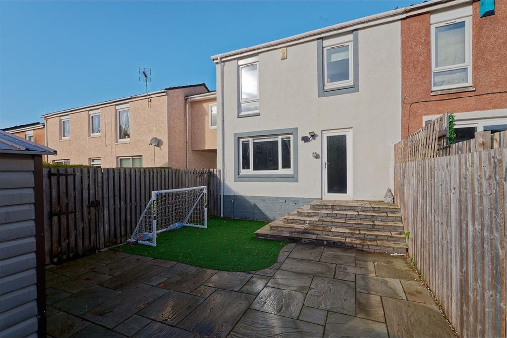 Nestled within a quiet and sought-after residential pocket of Erskine, this beautifully presented end terrace villa offers modern comfort, generous living space, and stylish interiors — ready for a new owner to move straight in and enjoy. Accommodation: Welcoming entrance hallway with convenient ground floor WC.Contemporary dining kitchen, fitted with excellent storage and generous worktop space. Integrated appliances include an electric range cooker, dishwasher, and fridge freezer, with plumbing for a washing machine.Bright and spacious lounge with garden views and direct access to the rear patio — perfect for relaxing or entertaining.Three double bedrooms on the upper level.Modern tiled bathroom with a three-piece suite and an over-bath shower.Landscaped front and rear gardens, both attractively finished with quality paving. The rear garden also includes a low-maintenance artificial lawn, ideal for year-round enjoyment.Gas central heating and double glazing throughout. Why Choose Erskine? Erskine is a highly desirable town on the banks of the River Clyde, celebrated for its peaceful environment, strong community feel, and excellent transport links. Residents enjoy easy access to Glasgow City Centre, Paisley, and Glasgow Airport, all within a short drive via the nearby M8 motorway. The area offers a wealth of local amenities and leisure facilities, including: Ingliston Country Club, perfect for dining, events, and relaxation. Erskine Shopping Centre, featuring supermarkets, cafés, and everyday essentials.Highly regarded primary and secondary schools, ideal for families.Abundant parks and riverside walks, including Boden Boo woodland and scenic Clyde cycle routes.Nearby sporting facilities, such as golf courses, gyms, and community sports clubs. With its combination of modern living, peaceful surroundings, and outstanding local amenities, 26 Portsoy represents a fantastic opportunity for families, professionals, or anyone seeking a comfortable home in one of Renfrewshire's most convenient locations. Dimensions Lounge 17'7 x 14'4 Kitchen 14'8 x 11'5 at widest 5'0 x 2'8 Bathroom 8'6 x 5'5 Bedroom 1 14'9 x 11'8 Bedroom 2 14'6 x 7'7 Bedroom 3 11'4 x 9'10
