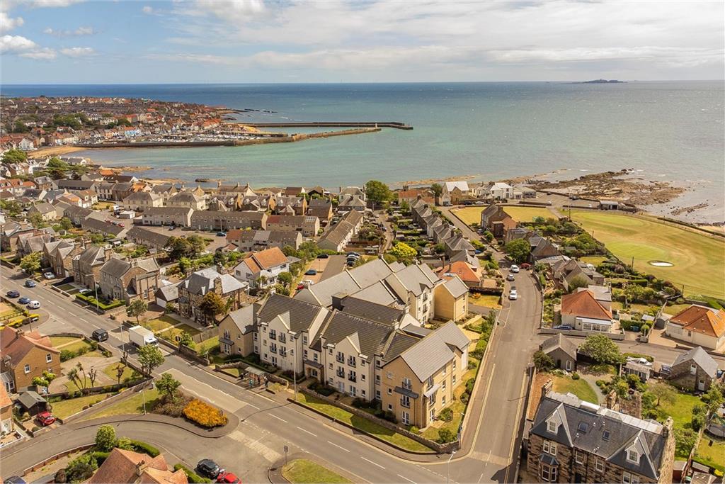 This sunny spacious two-bedroom, two-shower room retirement flat on the first floor of an exclusive development in the East Neuk of Fife, with stunning views over nearby harbour, Isle of May and Firth of Forth, a short stroll from shops, the beach, and a golf course. Communal facilities include landscaped gardens, a sunroom with panoramic sea views from roof terrace, lounge, a guest suite, a house manager, a 24-hour emergency care line, permit parking, and excellent bus links right at the doorstep. Extras: All fitted floor and window coverings (except the Lounge) and light fittings will be included in the sale. Factor: The development is factored by McCarthy Stone at a monthly cost of £333.10.