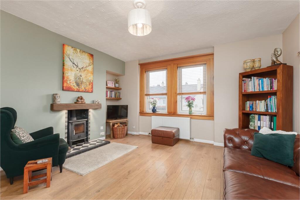 Open viewing Sunday 2-4pm or by appointment. This well-presented upper villa is situated in the highly desirable coastal town of South Queensferry, offering easy access to a wide range of local amenities including Port Edgar Marina and Water Sports available, excellent schools, and convenient transport links via Dalmeny train station and bus links to Edinburgh City centre and Edinburgh airport. The accommodation comprises a welcoming entrance hallway, bright and spacious living room featuring a multi fuelled stove, separate dining room, modern fitted kitchen, two generously sized double bedrooms one with a open working fire, and a bathroom with a shower over the bath. Externally, the property benefits from a well-maintained private rear garden with a log cabin (The Corbetti) with a coal bunker and a log store and a driveway providing off-street parking. Additional features include double glazing and gas central heating throughout. Included in the sale are the; floor coverings, blinds, cooker, fridge-freezer and light shades. All appliances included in the sale are sold as seen with no warranty provided. Tenure - Freehold Council Tax Band - B