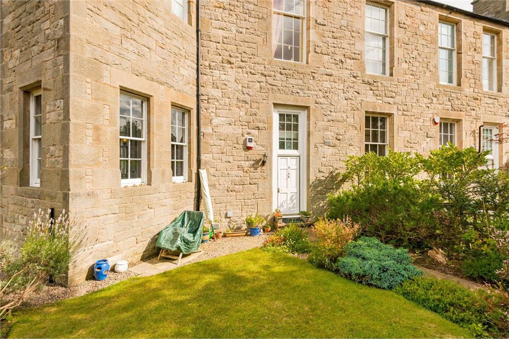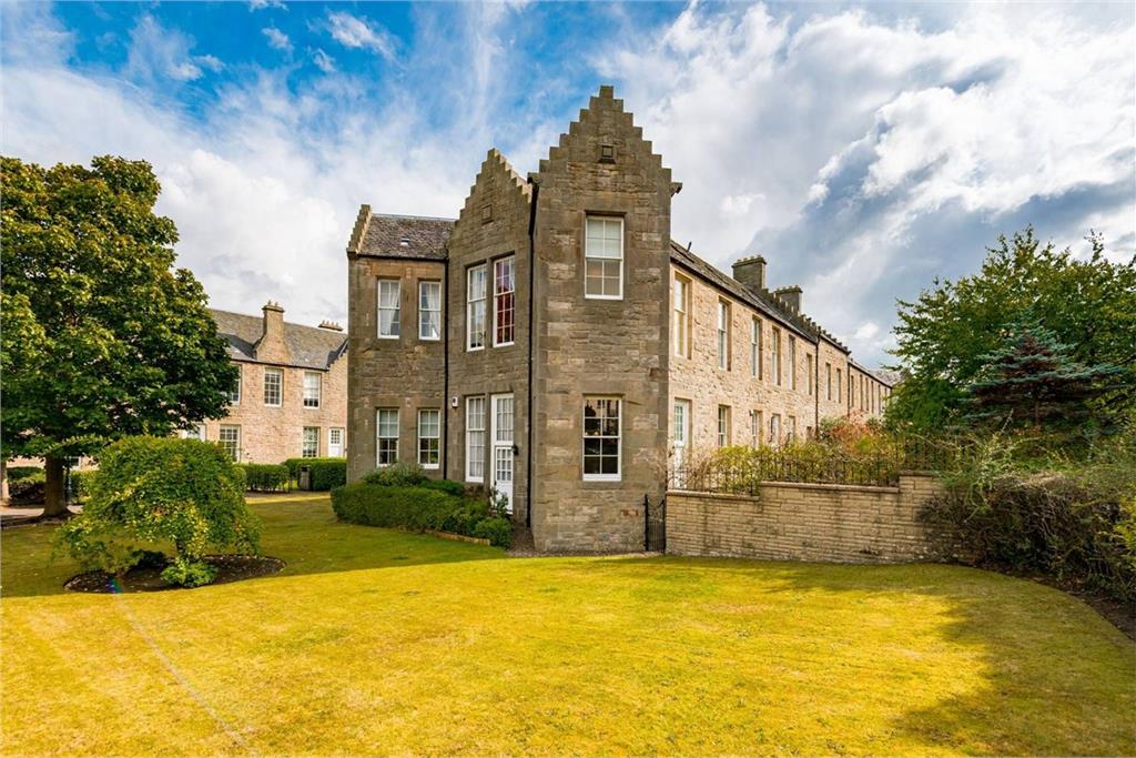 Forming part of a B listed stone building surrounded by immaculately maintained communal grounds, this end terraced villa comes complete with private garden ground and a drive in. The house has a fascinating interior layout and has been designed to take advantage of the leafy setting. Tall astragalled windows flood the rooms with light and bring the outside in. On the ground floor the welcoming reception hall leads through to the split level sitting and dining room. Also on the ground floor there is a galley style kitchen/breakfastroom and a WC. Upstairs, the principal bedroom has an en-suite shower room, there is a second double bedroom and the family bathroom. There is excellent storage space throughout including a large attic. Additional benefits include gas central heating. The development is factored by James Gibb and a quarterly payment of approximate £70 covers gardening and maintenance of communal areas.