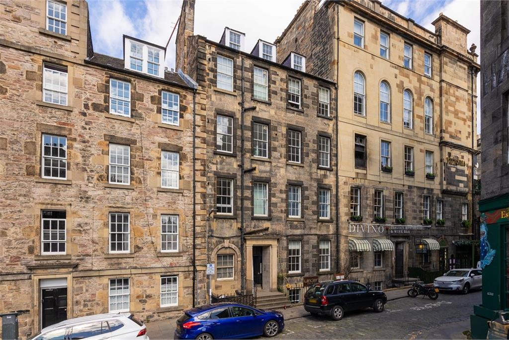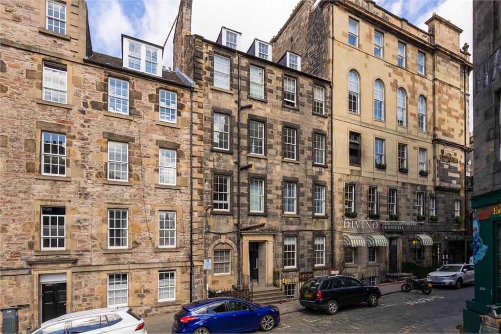 Tremendous opportunity to acquire this generously proportioned four bedroom second floor flat, situated in the heart of Edinburgh’s historic Old Town. With first-class amenities and excellent transport links within easy reach, the property is ideally suited to professionals and buy-to-let investors alike. The accommodation begins with a welcoming entrance hallway and a large storage cupboard. The bright and spacious open-plan lounge, kitchen and dining area benefits from twin windows and a fitted kitchen complete with included white goods, partially tiled in splash areas. There are four well-sized double bedrooms, three with room for different configurations, and a peaceful rear aspect and stunning views towards the iconic Edinburgh Castle. Bedroom four faces the front of the building and offers ample space for freestanding furniture. The modern shower room features a smart vanity unit, heated towel rail, and a mix of partial tiling and panelling. Further features include gas central heating, single glazing, and a secure door entry system. The property previously held an HMO licence which has recently expired, and it is expected that reinstating it should be relatively straightforward. For the car owner, on-street permit/metered parking can be found on Merchant Street and within the surrounding area. Council Tax Band - E