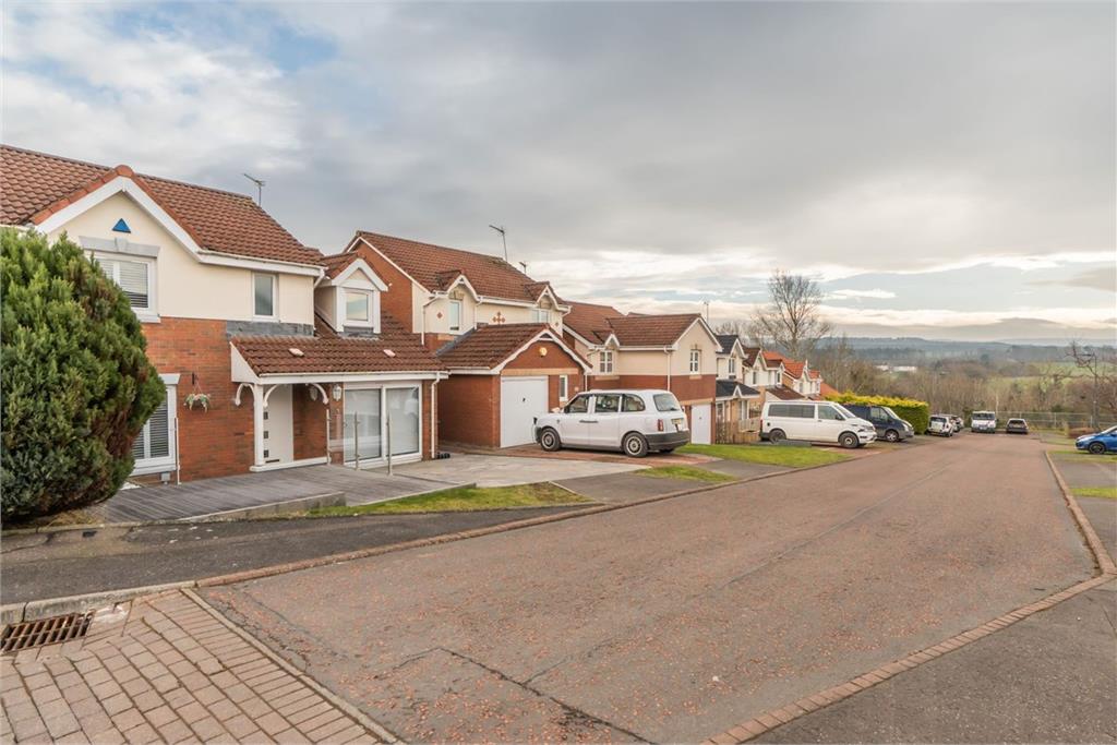 This sizeable five bedroom detached villa with private gardens and driveway forms part of a quiet cul-de-sac within an established modern development surrounded by open countryside yet conveniently placed for access to excellent amenities and transport links. This lovely family home enjoys a light and stylish interior with generously proportioned rooms and offers a great deal of flexibility, ideal for the growing families. In brief the accommodation comprises; entrance hall, good sized front-facing lounge which opens to the dining room with patio doors leading to the rear garden. The modern kitchen is fitted with ample wall and base units with built-in hob/oven/hood and integrated dishwasher and washing machine. Further access to the garden is provided. A great addition to this property is the sizeable fifth bedroom/family room, allowing buyers a great deal of versatility and offering a great space with French doors to the front. Completing the downstairs accommodation is a handy two piece WC apartment. A carpeted staircase leads to the upper landing which in turn provides access to all further bedrooms. The principal bedroom has the advantage of a modern en-suite shower room and the family bathroom comprises of a three piece modern suite with shower over bath. Further benefits include gas central heating and recently replaced double glazed windows and doors. The front garden has been laid with decking with driveway to the side. The fully enclosed rear garden has been laid with artificial lawn and patio with the garden shed included in the sale. There is a factoring fee of approx. £18 pcm payable to Ross and Lidell for the upkeep of the communal garden grounds within the development. Council Tax Band - E