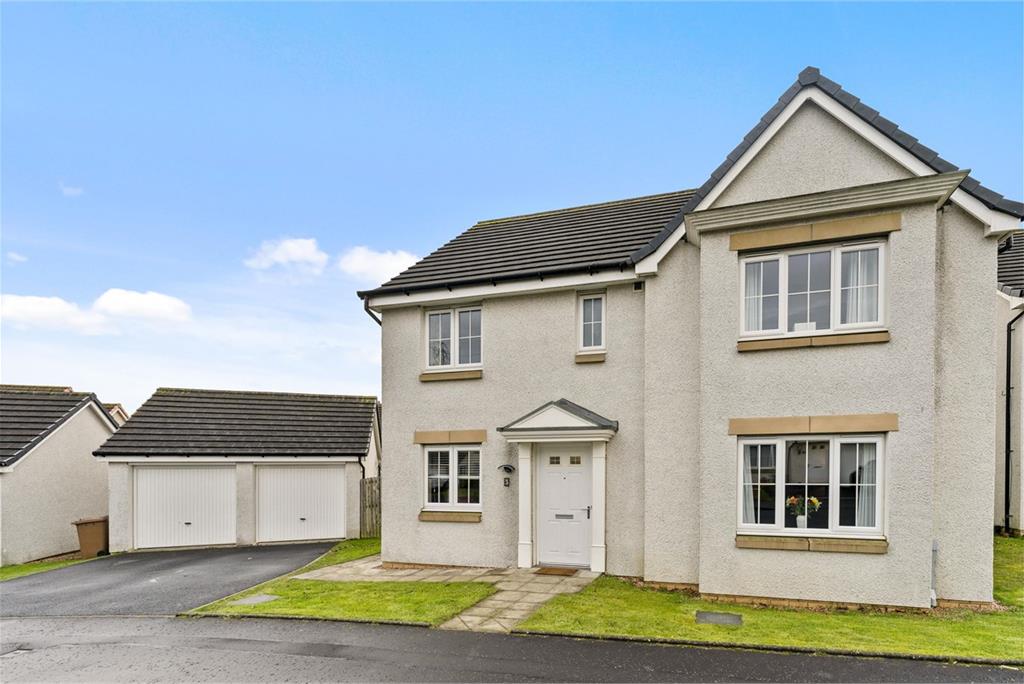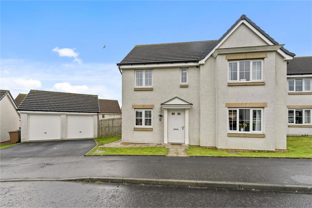 An immaculate, executive family home situated within a popular residential setting within the eastern expansion of Dunfermline. Located within a quiet residential setting within the heart of Duloch Park, Redwing Wynd is an excellent location with Fife Leisure Park offering a variety of amenities including various restaurants, coffee shops, health club and a ten-screen cinema. Several local supermarkets within easy reach of the property and Dunfermline's City Centre offers additional amenities and outdoor spaces, including Pittencrieff Park, gifted to the city by famous philanthropist Andrew Carnegie. Transport links for the commuter are available via Halbeath Park and Ride, Queen Margaret Railway Station and the M90 motorway. Only a short walking distance from several local primary schools and around a 20 minute walk from Dunfermline's Learning Campus. A lovely area with pleasant walks and Duloch Park around a 15-minute walk from the property. Driveway with parking for several cars leading to detached double garage. The accommodation briefly comprises of entrance hall with WC and storage available under the stairs. Principle public room is a spacious front facing lounge with bay window with an additional public room leading off from hall currently utilised as a home office.To the rear of the home there is a contemporary, fitted kitchen and dining family area with a selection of floor and wall mounted storage and French Doors leading onto enclosed rear gardens. Separate utility room with room for white goods completes the ground floor accommodation. On the first floor there is a spacious master bedroom with modern en suite and fitted wardrobes and three further double bedrooms with built in wardrobes available within bedroom three. Modern family bathroom with three piece suite with shower over bath completes the accommodation. Private rear gardens, benefiting from patio and lawn. Driveway with parking for several cars and detached double garage. Gas central heating and double glazing Rating - B, Council Tax Band - F Factor Fees - £50.00 per quarter