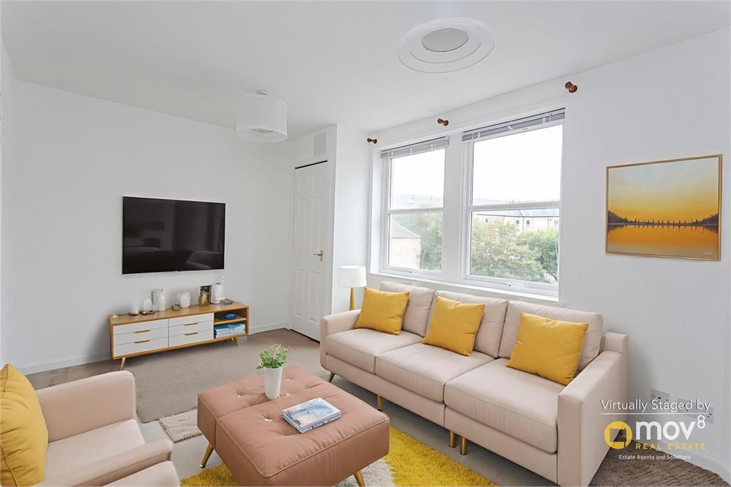 Bright and well-presented, two-bedroom, second-floor dual-aspect flat of a modern residential development, with an allocated parking space. Set in a quiet residential cobbled side street, in the Haymarket area, exceptionally well-located for the west end of Edinburgh city centre. Comprises an entrance hallway, living/dining room, kitchen, two flexible bedrooms and a bathroom. With light neutral decor throughout, highlights include a fitted kitchen with appliances, double glazing and gas central heating. In addition, there are good integral storage spaces, TV and telephone points, and a secure entry system. Externally, there is a residents' car park to the rear of the building, whilst superb public transport links also include Haymarket station just minutes away. An inviting entrance hall welcomes you into the home, providing access to all rooms, with the living/dining room set to the side, finished with carpeted flooring and featuring a built-in cupboard ideal for storage. The kitchen, finished with wood-effect flooring, offers fitted countertops, a tiled splashback, a sink with drainer, an integrated oven and electric hob with canopy above, along with a washing machine and fridge/freezer. Carpeted flooring continues throughout, creating a warm and homely feel, leading to bedroom one, decorated in light tones and enjoying a large window, and bedroom two, which benefits from mirrored built-in cupboards. Completing the property is a family bathroom featuring a three-piece suite with an electric shower over the bath. A 360 virtual tour is available online.