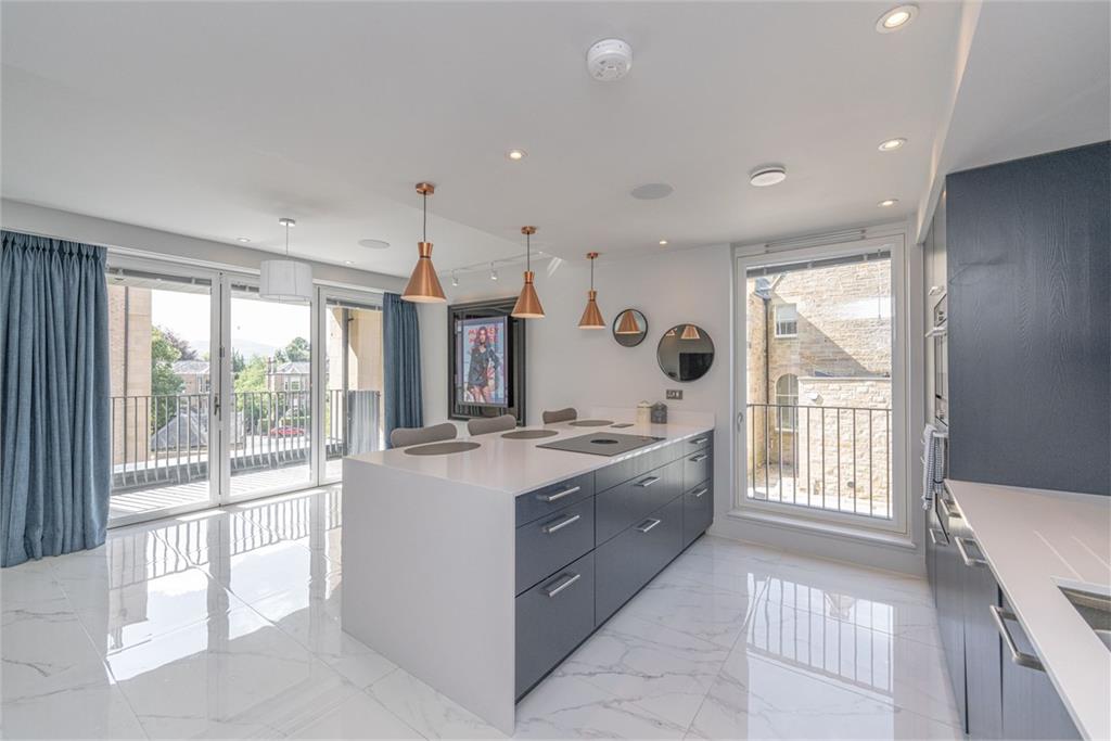 Forming part of an exclusive development by AMA Homes in Murrayfield is this stunning first floor apartment finished to a high specification which benefits from gas central heating, double glazing and an allocated parking space. The apartment forms part of a modern factored development with video intercom entry system and lift access to all floors. The development enjoys beautifully landscaped shared grounds which incorporate visitors parking, EV charging points and secure bike storage. The accommodation includes an entrance hallway with porcelain tiled flooring, storage cupboard and utility cupboard with the washing machine and tumble drier to remain. The porcelain tiles continue into lovely open plan lounge/kitchen/diner which has full height window with juliette balcony and patio door leading to the balcony with views towards the Pentland Hills. The kitchen area has window with juliette balcony to the side, breakfast bar and is fitted with a range of modern base and wall units with a boiling water tap and oven, hob, hood, built-in microwave, fridge/freezer, dishwasher and wine cooler to remain. The fully carpeted master bedroom has window to the side, fitted wardrobes with mix of hanging rails, shelves and drawer units and en-suite shower room fitted with a two piece white suite. There is a further fully carpeted double bedroom with window to the side and fitted wardrobe. Completing the accommodation is the modern bathroom fitted with a three piece white suite with shower over the bath. There is a factoring arrangement in place for the upkeep of common areas including the maintenance of any common buildings, outdoor areas, stair cleaning and lift maintenance (where applicable). The current factor is Redpath & Bruce with a annual payment of approximately £2500. Early internal viewing of this lovely apartment is essential. Murrayfield is a prestigious and most desirable residential district situated approximately two miles west of the City Centre, offering an abundance of amenities close by. There are a number of local shops and mini supermarkets a few minutes' walk away at Roseburn. More extensive shopping including Sainsbury's, Marks and Spencer and Boots is available at Craigleith Retail Park and the fashionable district of Stockbridge and all its trendy cafes are also close by. There is a regular bus service from Roseburn to the City Centre and also westwards through Corstorphine to Edinburgh Airport The tram stop at Murrayfield is within walking distance and Haymarket railway station is also within easy reach. For commuting, the city bypass and the M8/M9 motorways are easily accessible. Leisure pursuits are well catered for. Corstorphine Hill is close by as are a number of private and public golf courses and tennis clubs. Pleasant walks can be taken along the Water of Leith. Further leisure opportunities include Edinburgh Zoo, Murrayfield Ice and Curling Rinks, Murrayfield Rugby Stadium and numerous art galleries.