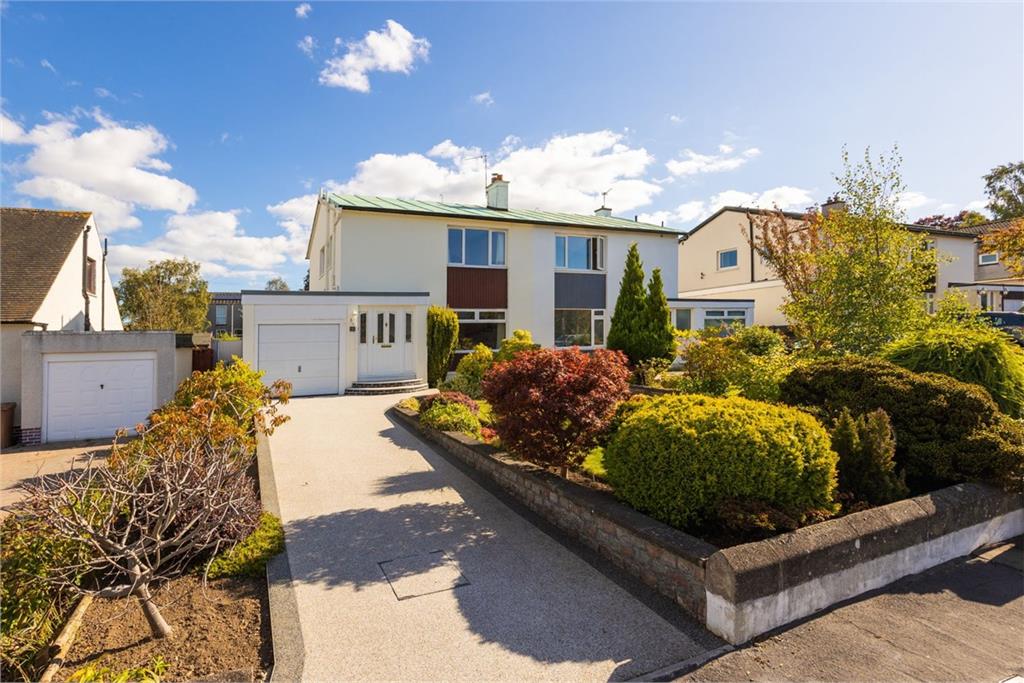 An exceptionally appealing semi detached villa, forming part of an established residential development and enjoying a superb location in Edinburgh’s leafy Barnton district. The property boasts substantial beautifully maintained garden grounds, a driveway/garage and offers well proportioned family accommodation within the desirable Royal High School catchment area. The space is accessed via an entrance hallway and briefly comprises: generously proportioned reception/dining room with carpeted floor, focal fireplace and feature stair leading to the upper level, glass doors open out to a charming sun room, which takes in views of the delightful rear garden and offers a peaceful space to read and relax, well equipped kitchen which has been fitted with a variety of wood base and wall mounted units, complete with contrasting wipe clean worktops, high quality flooring and a selection of built-in appliances, utility room in turn leading to the integral garage, bright west facing principal bedroom with excellent built-in storage, two further bedrooms, and stylish contemporary shower room with modern splash tiling, two piece white suite and walk-in drench shower. A floored attic with ramsay ladder offers additional, accessible storage. To the front of the house is a charming private garden which has been laid to lawn and is well stocked with a variety of bushes and small trees. A generous driveway leads to a single garage, providing excellent off-street parking/overspill storage. To the rear is a magnificent enclosed garden which has a lovely open feel and comprises lawn, a paved seating area and a mature hedgerow border. At the top of the garden there is a further paved terrace, together with a garden shed which will be included. Council Tax Band - F