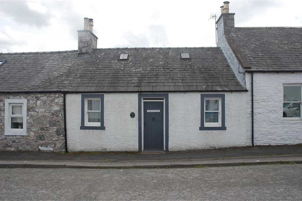 The property is located in the picturesque rural conservation village of Kirkpatrick Durham which has a village hall, church and park. Kirkpatrick Durham is located approximately 1 mile from Springholm which includes local amenities such as a primary school, village hall and shop. The popular market town of Castle Douglas is located approximately 6 miles distant and provides a wide range of independent shops, supermarkets, restaurants and cafes, primary and secondary schools, health centre, churches, golf course, swimming pool and cottage hospital. Charming, terraced, stone built cottage with sizeable rear garden and open views to the rear, towards the park and countryside beyond. The property is finished in a traditional style and would benefit from modernisation throughout. It benefits from double glazed sash and case style windows at the front of the property and there is electric central heating throughout fed by an electric boiler. The ground floor features a sitting room with open fire, ceiling beams and enjoys a double aspect, a double front facing bedroom and an adjoining bathroom. The kitchen extension is located at the rear of the property and has direct access to the garden. Upstairs, there is second double bedroom and a dressing/storage area with w.c. completes the accommodation. Outside, the gardens comprise a seating area with a large lawn area beyond. Ground Floor Vestibule Traditional solid wood external front door; half height wood lining boards to walls; fitted carpet. Hall Hallway lit by a small skylight window; electric meters and fuse box; half height wood lining boards to walls; fitted carpet; radiator; wood panelled doors to lounge, bedroom, bathroom and solid wood door to the kitchen. Lounge Double glazed sash and case style window to the front with a deep sill and natural wood lined surround; traditional cast iron fire-place with a wooden surround housing open fire; natural wood finishes that include traditional ceiling beams; shelved recess with light above; leaded glass window to the rear with a deep sill and wooden surround; staircase to the first floor; fitted carpet; two radiators. Kitchen Leaded glass window to the rear overlooking the garden and further leaded glass window to the side; natural wood fitted wall and floor units incorporating 1½ bowl sink unit and tiled splash-back; built-in Neff ceramic hob and Neff fan oven; coomb ceiling; wood lined ceiling with downlights; central heating control and thermostat; spotlights; carpet tiles; wooden external door to the rear garden. Bedroom 1 Double bedroom with double glazed sash and case style window to the front, deep sill and natural wood surround; natural wood finishes; fitted carpet; radiator. Bathroom Part obscure glazed window to the rear with deep sill; white suite of bath, w.c. and wash-hand with tiled splash-backs; light with shaver point; wood lined ceiling with downlights; fitted carpet; radiator. First Floor First Floor Landing A natural wooden staircase from the sitting rooms leads to the first floor landing; coomb ceiling; wood lining boards to walls and downlights; small skylight window; storage recess; doorways to bedroom 2 and dressing/storage area & WC. Bedroom Double bedroom with window to the rear and views across the garden towards the park and countryside beyond; coomb ceiling; wood lining boards to walls and ceiling; small skylight window to the front; television aerial connection; wall light; fitted carpet; radiator. Dressing/Storage Area & WC Window to the rear; w.c. and wash-hand basin; natural wood lining boards to walls and ceiling; downlights; fitted carpet; radiator. Rear Garden The sizeable rear garden comprises a paved seating area with a large lawn area beyond with some established shrubs, bounded by hedging on both sides. The rear garden backs on to the park and enjoys countryside views beyond. Two wooden outhouses adjoin the kitchen, one of which stores the electric Trianco Aztec boiler and modern hot water cylinder. By appointment with the Selling Agents.