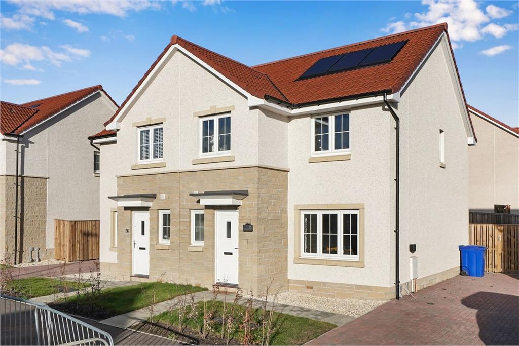 Nestled in the heart of the stunning Shawfair development in soughtafter Danderhall is this immaculately presented semi-detached house. Boasting a long driveway, large gardens, gas central heating and double glazing this home which is less than a year old would make an ideal home in a tranquil, yet well-connected location. The accommodation on the ground level comprises a welcoming entrance hallway with useful W/C, a bright lounge lounge with picture window, a contemporary dining kitchen with luxury units and French doors out to the rear garden. Following up a carpeted staircase the upper level enjoys a master bedroom with built-in mirrored wardrobe and elegant en-suite shower room, two further well-proportioned double bedrooms (one with further built-in mirrored wardrobe) and the home is completed by a stylish bathroom with shower over bath. Externally the secluded and fully enclosed, landscaped rear garden is mainly laid to lawn. • Stunning semi-detached house • Driveway and a secluded rear garden • Exciting new development full of potential • Welcoming hallway with W/C • Bright lounge • Luxury dining kitchen • Three ample double bedrooms • En-suite shower and stylish main bathroom Energy Rating B, Council Tax band E