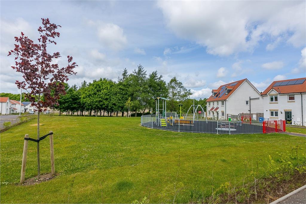 Beautifully presented, three-bedroom, end-terrace home, with gardens and two allocated parking spaces. Set in a quiet, modern and family-friendly residential development, located in the desirable village of Roslin, to the south of Edinburgh. Comprises an entrance hall, living/dining, kitchen, three flexible bedrooms, a family bathroom and a ground floor WC. Light and tastefully finished throughout, highlights include a stylish, fully integrated kitchen, modern bathrooms, and gas central heating. In addition, there is good storage provision, multiple TV points, double glazing, and quality contemporary flooring. Externally, the property boasts a generous enclosed rear garden with a lawn and paved patio, whilst a paved path and shrubbery are set to the front. Both parking spaces are positioned adjacent, with additional unrestricted parking and well-maintained communal grounds, including a large green with a play park. A welcoming entrance affords access to the carpeted stairs leading to the upper hall, and throughout the ground floor, including a convenient storage cupboard and WC. Set to the rear, a light and tastefully finished lounge features carpeted flooring, a built-in cupboard, light fittings, and patio doors that open directly onto the garden—ideal for relaxing or entertaining. To the front, a stylish kitchen is fitted with modern units, wood-effect worktops, a sink with a drainer, and a full range of integrated appliances, including an induction hob, an eye-level microwave and oven, a fridge/freezer, a dishwasher and a washing machine. Upstairs, the spacious main bedroom is positioned to the front and offers ample space for freestanding furniture, along with neutral decor and plush carpeting. Two further well-proportioned bedrooms are situated to the rear, both enjoying views of the garden and finished to the same high standard. Completing the accommodation, the family-sized bathroom is fitted with a modern three-piece suite including a shower over the bath and tiled splash walls. A 360 Virtual Tour is available online. Factor Fees: Hacking and Patterson - approx £160 yearly