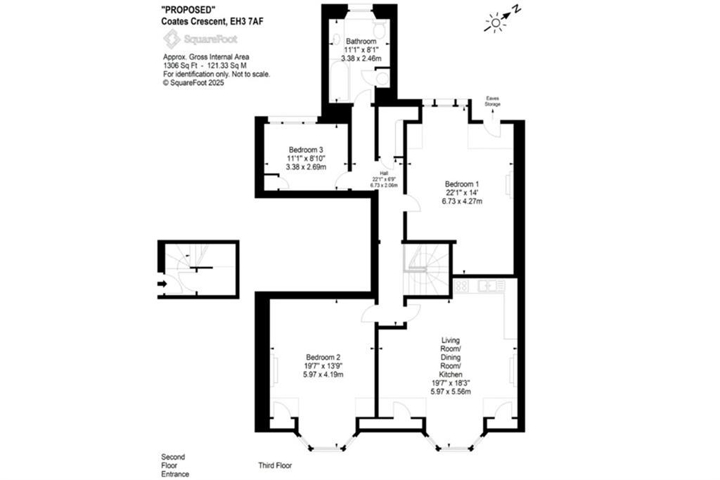 This rarely available third floor flat with fantastic views of Edinburgh Castle and St Mary’s Cathedral forms part of a handsome Georgian Crescent in the heart of the city's desirable West End. The property is close to many popular amenities including shops, bars and restaurants and there are excellent public transport links via bus, tram and rail. Lovely outdoor space is available within walking distance at nearby Princess Street Gardens. The property is entered via a well-maintained communal stair with attractive cupola and the generous accommodation comprises: welcoming hallway, bright, living room/dining room, separate breakfasting kitchen, two generously proportioned double bedrooms and bathroom with shower over bath. There is potential to relocate the kitchen to create a three-bedroom property, subject to the relevant local authority permissions being obtained. The property features gas central heating and has on-street permit and pay and display parking available in the area. Included in the sale are the fitted carpets and floor coverings, cooker, fridge/freezer, washing machine and dishwasher. All appliances included in the sale are sold as seen with no warranty provided. Tenure - Freehold Council Tax Band - E
