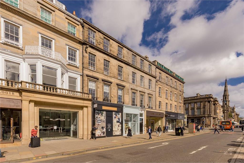 Situated in Edinburgh's most prestigious and popular central street surrounded by outstanding amenities, this is an exceptional top flat with spectacular views from the rear towards the River Forth and beyond. The flat with this prime George Street address, has all the benefits of city centre living and is situated on the north side of the street between Hanover Street and Frederick Street and due to its exceptional location benefits from an outstanding range of local hotels, fashionable bars, popular restaurants, unique and unusual shops and coffee bars and cafes in the immediate surrounding area. Not only is the flat surrounded by outstanding amenities, it has excellent travel links being a short distance from Princes Street with many buses and tram connections there, and only a short walk from Waverley train station with connections to all parts of the country. Stockbridge is a short drive away with a further selection of outlets and also the new St. James Quarter and St. Andrew Square are very close to this property. The tram referred to connects with Edinburgh International Airport and also to Leith, and for outdoor pursuits the property is accessible for Queen Street gardens and also for the Royal Botanical Garden, Inverleith Park and the Water of Leith walkway which are all within easy reach. There are art galleries in the area and sports clubs and Edinburgh Castle and the Royal Mile are within easy reach of the property. This impressive property was built over 200 years ago and comprises spacious accommodation on the top floor. The spacious accommodation on the top floor comprises a welcoming entrance reception hall leading to the main apartments. There is an elegant drawing room/lounge and three bedrooms, two of which have facilities. There is a family bathroom and the kitchen is spacious. Although the property requires some modernisation it offers spacious living in a very central location. The flat has the benefit of full gas central heating and views at the rear, and this is one of the finest examples of Georgian architecture which retains much of its original character with astragalled windows at the front and fine decorative plaster work. The flat is approached from the street by a secure outer door with an entry phone system serving the block and with a carpeted stair with wooden banister leading to the top floor where the subjects are found through the last door on the landing.