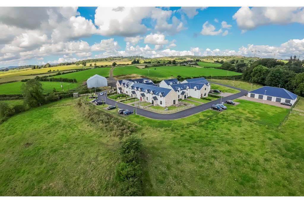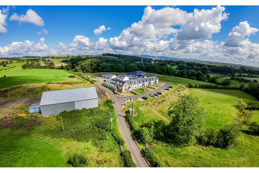 Situated just 0.8 miles outside the centre of the village of Houston is this simply stunning end terraced villa formed around a development of only ten homes in one of Houston's most stunning outlooks. Completed in 2021 in the form grounds of Chapel Farm, the developer created stunning homes whilst retaining character in a peaceful setting. A blend of stone and render make up the façade of number four with the added benefit of a corner position, no matter what angle you view this home from you will be suitably impressed. A broad reception hallway with pitched covered roof leads to the front facing lounge. The dining kitchen is impressively bright with windows to the front which faces East and a set of French doors on the side elevation giving direct access to the lawn garden. the kitchen itself has a breakfast bar for casual dining, space for a dining table and ample wall & base units with contrasting granite work surfaces as well as integrated appliances that include oven, hob, extractor hood and dishwasher. A separate utility room off the hallway has further plumbing facilities and there is also a cloakroom with and wash hand basin. An understair storage cupboard completes the ground floor. A carpeted stairwell leads to the first floor where there are four well proportioned bedrooms and the house bathroom. The principal bedroom has an en-suite shower room and the bathroom is designed in the same contemporary manner with bath, separate shower, and wash hand basin. Three of the bedrooms have had wardrobes built-in for added storage. From these bedrooms stunning vistas can be had on two of the elevations overlooking the farmland and beyond. The specification of this lovely home includes gas central heating, double glazing, solar panels and a garage in the garage complex in the grounds. Houston is a residential village which is an ideal base for the commuting client, being a short drive away from the bypass which links up with the M8 motorway for connection to Glasgow International Airport, Paisley, Braehead Shopping Centre and Glasgow city centre. Houston village is only 0.8 mile away and offers a range of local shops and amenities and social and recreational facilities such as tennis/squash club, bowling club and village pubs. Also within Houston is the respected Gryffe High School and two Primary Schools. Dimensions Lounge 16'8 x 12'2 Breakfast Dining Kitchen 23'8 x 16'9 Utility 7'0 x 6'6 5'8 x 4'7 Principal Bedroom 12'0 x 11'6 En-suite 7'7 into shower x 4'2 Bedroom 2 12'4 x 11'4 Bedroom 3 12'1 x 10'5 Bedroom 4 11'3 x 10'5 Bathroom 10'2 x 7'3 Band B