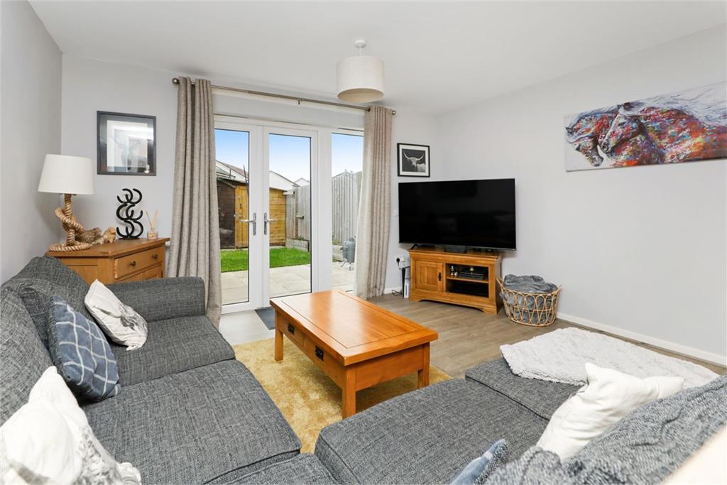 Well-presented three-bedroom mid-terraced home set within a popular modern development in East Linton to the East of Edinburgh. The property will make an ideal home for a couple or small family and comprises of an entrance hallway, a downstairs WC, a bright and spacious kitchen-living room with patio doors leading to the rear garden, the fully fitted attractive kitchen currently comprises the washing machine, gas hob, oven and fan and fridge/freezer. Upstairs you will find a hallway leading to three well-proportioned bedrooms, two with built in storage and the master with picturesque views. Completing the accommodation is the stylish bathroom with shower over the bath. The property also benefits from an allocated parking space, floored attic, gas central heating, double glazing and externally there is a rear garden made up of a patio, lawn and a shed. Early viewing is highly recommended to avoid missing out. Energy Rating B. Factoring charges covered by Spiers Gumley approx £70.69 per quarter and covers communal grass maintenance.