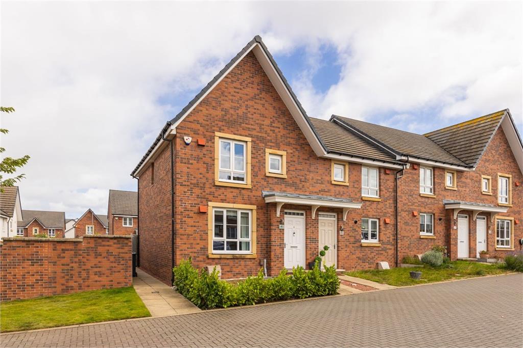 This most attractive, light and stylish end terraced villa with private front and rear gardens is quietly positioned within a small cul-de-sac setting within an established modern development conveniently positioned within walking distance of the Fort Kinnaird Retail Park with excellent bus links on hand. Offered to the market in move-in condition, this delightful property shall undoubtedly appeal to the professionals or families alike seeking a stylish home in an excellent location close to superb amenities, transport links, schooling and leisure pursuits. Enjoying a light and contemporary interior throughout, the accommodation comprises; entrance hallway with carpeted staircase leading to the upper floor. There is a sizeable front-facing lounge with under-stair cupboard, a modern dining integrated kitchen with French doors leading to the rear garden. Fitted with ample wall and base units with built-in gas hob, electric oven and hood with integrated fridge freezer and dishwasher. A useful utility room is located off the kitchen, which in turn leads to the two piece WC apartment with window to rear. Located upstairs are the three good sized bedrooms, with the two double rooms housing free-standing wardrobes – which are included in the sale. Lastly the family bathroom comprises of a white three piece suite with mains shower over bath. Further benefits include gas central heating with combi boiler and double glazing and it should be noted that all kitchen appliances and most items of furniture can be included in the sale if desired. There are private gardens to the front and rear of the property, with the fully enclosed rear garden providing an expanse of lawn and patio. Ross & Liddle are the Factoring Agents for the development to which a fee of approx. £120 per annum is payable for the upkeep of the communal garden grounds. Council Tax Band - D