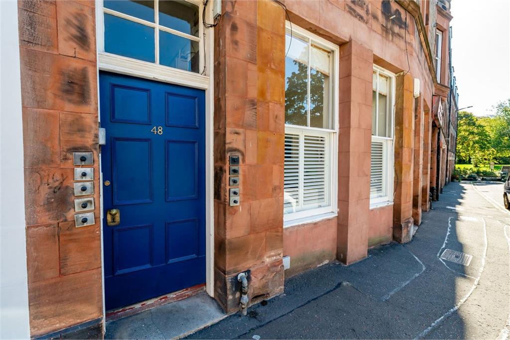 Occupying the ground floor of a Victorian tenement within Edinburgh's prestigious New Town this two-bedroom apartment in excellent move-in condition is ideal for a comfortable modern lifestyle. Moments from King George V Park, and a short walk from fashionable Stockbridge and the City Centre, this much-loved home will appeal to a wide audience from first-time buyers, through to professionals and investors. There is a beautifully presented living room with wooden flooring, cornicing and stylish louvred shutters, in addition to ample space for a table and chairs. With direct access to the rear garden, the sleek fitted kitchen has neutral handle less wall and floor mounted cabinetry, worktops, and integrated appliances including an extractor hood, fridge/freezer, gas hob, dishwasher and eye-level double oven. The kitchen tap also provides boiling water. The light-filled principal double bedroom has an elegant interior including carpeting, white louvred shutters, a bespoke window seat, and cornicing. The room also benefits from built-in storage. A second single bedroom has wooden flooring and a sash and case window, along with a high level cupboard. The well-appointed walk-in shower room has a hidden cistern WC, and washbasin built into a vanity unit. Heating and hot water are provided by gas central heating. There are two large storage cupboards in the hall, one of which contains the washing machine and there is also an intruder alarm. There is direct access from the kitchen to the delightful, rear shared garden which is mainly laid to lawn with seating, a drying green, and established bushes and shrubs. Resident's on-street (permit and metered) parking is available outside. The Local Area Situated to the north of Princes Street, Edinburgh's New Town is a UNESCO World Heritage Site and conservation area. Princes Street, and George Street are within roughly a fifteen minute walk of the property as is St James Quarter and Multrees Walk. There are exceptional bars and restaurants right on the doorstep whilst theatres, cinemas, galleries, and Edinburgh's globally renowned cultural attractions are all in easy reach, from The Playhouse and The Scottish National Portrait Gallery to The Everyman Cinema and Scott Monument. Fantastic recreational opportunities within walking distance include Bannatyne's Health Club on Queen Street and the exclusive gym & spa at Kimpton Charlotte Square. The area offers a host of green spaces including King George V Park, the Water of Leith walkway and the Botanic Gardens. Daily shopping needs are met by the many high street and independent local supermarkets and delis, whilst larger stores such as the Tesco at Canonmills are also nearby. An ideal location for superb transport links, Edinburgh Waverley Train Station and bus station are both within walking distance and the trams offer direct access Edinburgh Airport and down to the coast at Newhaven. Bus services from Dundas Street and Canonmills are also excellent and provide a quick connection to various parts of the city. Extras All blinds, curtains, light fittings, fitted flooring, and white goods are included in the sale price. Other items may be available subject to separate negotiation.