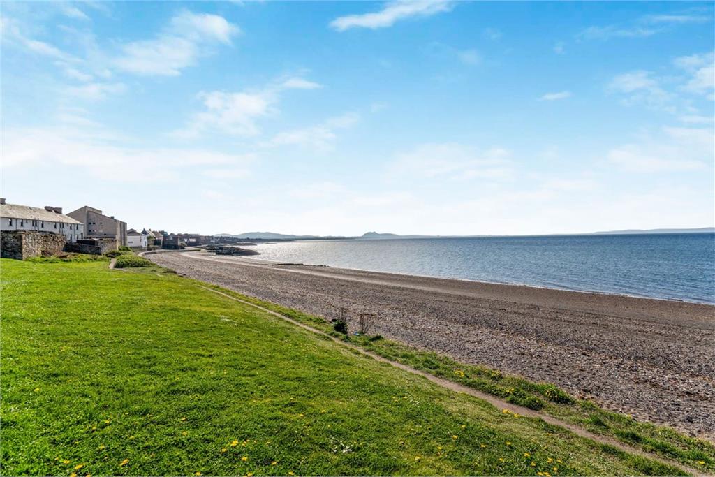 Immediate Entry. This is a rarely available double upper flat offering generously proportioned (97m sq) accommodation within an established residential development close to excellent local amenities, sea front and train station. The accommodation, all in good decorative order benefits from electric storage heating and double glazing. It comprises an entrance hall with staircase to the upper floor, spacious dual aspect living/diningroom with French doors to the Juliet balcony, fitted kitchen, two front facing double bedrooms, both with fitted wardrobes and an internal, modern panelled shower room with two piece white suite and walk in shower. Upstairs is a hallway with separate entrance door, generous storage cupboard, large rear facing double bedroom with stunning sea views, an internal, part tiled bathroom with three piece coloured suite including an electric shower over the bath. There is a residents car park to the rear of the property with unallocated parking. The historic town of Prestonpans is situated on the southern shore of the Firth of Forth surrounded by unspoilt countryside. The town is an extremely popular commuter base, being only three miles beyond Musselburgh and close to the A1 which links quickly and easily with Edinburgh City Centre via the City Bypass as well as having a railway station which gives access to central Edinburgh in around fifteen minutes. There are a number of local shops including a supermarket, schools and other social amenities within the town. Further shopping can be found a short distance away at FortKinnairdRetailPark, Newcraighall, which offers a selection of “High Street” shops and superstores. A variety of leisure facilities are available in the area including Prestonpans swimming pool, a choice of golf courses and several sandy beaches.