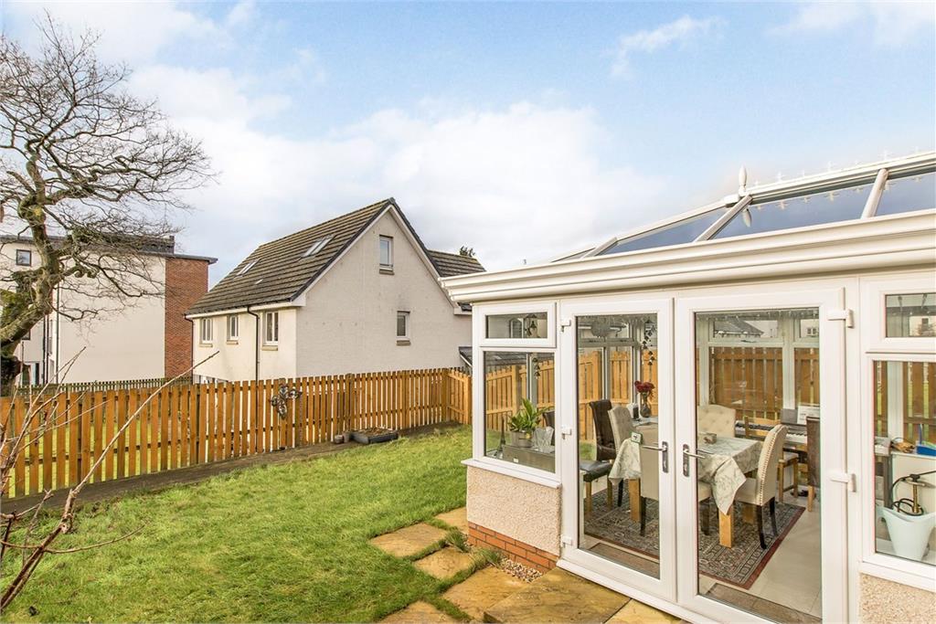 Situated in a modern development in Corstorphine, this detached house offers two reception areas, a kitchen, three bedrooms, an en-suite shower room, a separate bathroom, and a WC, plus a southwest-facing garden, an attached single garage, and a driveway. The front door opens into a hall with two built-in storage cupboards and a WC, leading into a living room. Illuminated by a southwest-facing window capturing sunny natural light throughout the day and overlooking the garden, the living room offers plenty of space for lounge furniture and is conveniently connected to the kitchen. In the kitchen, modern cabinets are accompanied by spacious worktops and splashback tiling, as well as a selection of integrated appliances. There is also space for a small dining/ breakfasting area if desired, and double doors open into an adjoining conservatory. The conservatory is a sun-filled space that offers various options for use, including a dining room, and benefits from garden access. On the first floor, a landing (with built-in storage) leads to the home’s three bedrooms and a family bathroom. Two of the bedrooms peacefully overlook the garden and enjoy a sunny southwest-facing aspect, including the principal bedroom which further benefits from a built-in wardrobe and an en-suite shower room comprising a large shower enclosure, a WC-suite, and vanity storage. Finally, the bathroom comes complete with a bath with a shower tap attachment, a pedestal basin, a WC, and a tall chrome towel radiator, as well as a useful linen cupboard. Externally, the house is accompanied by a favourably southwest-facing rear garden featuring a spacious lawn and a patio for outdoor dining furniture. Private parking is provided by an attached single garage and a driveway. Extras: Integrated kitchen appliances comprising an oven, gas hob, extractor hood, fridge/freezer, dishwasher, and washing machine will be included in the sale. Please note, no warranties or guarantees shall be provided for the appliances.