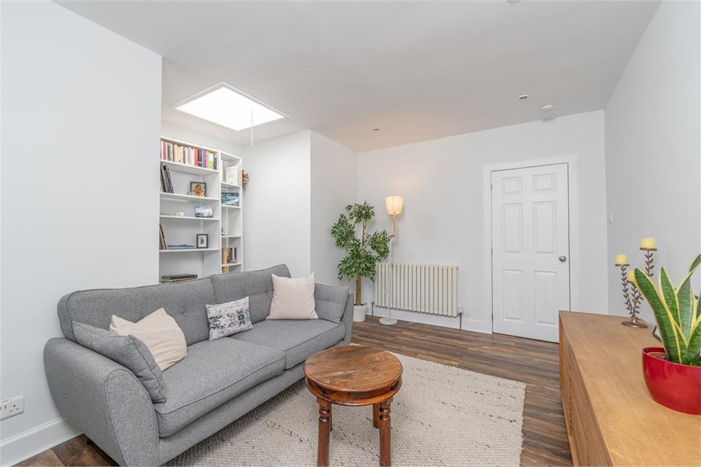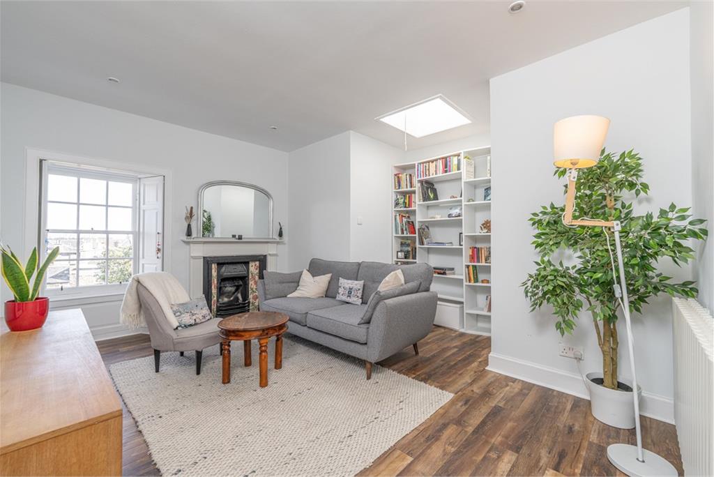 With bright, beautifully presented accommodation is this 4th (top) floor flat located in the sought after Broughton area of Edinburgh. Forming part of a traditional tenement building with secure entry and shared rear garden, the flat has gas central heating. The accommodation includes an entrance hallway which leads to all rooms. There is a bright lounge with window to rear, skylight, feature fireplace and attractive open shelving. The dining kitchen has a window to the front and is fitted with modern base and wall units with the oven, hob, hood, fridge/freezer and washing machine to remain. There are two bedrooms, both with skylight windows and the larger of the two has a full wall of fitted cupboards. Completing the accommodation is the bathroom with three piece white suite with shower over the bath. Externally, there is a beautifully tended shared rear garden which is mainly lawn. Early viewing is essential to appreciate the accommodation offered. Broughton Street is set just to the north of the city centre and is particularly popular with first time buyers and investors. This popular area has a selection of local shops, bars, regular bus and tram services along with Tesco and Lidl supermarkets. The St James Quarter boasts a range of shops, restaurants, cinema and leisure activities and is a short walk away. The city centre is within easy reach as is The Shore, Leith Walk along with Inverleith Park, the Botanic Gardens plus the added amenities of nearby Stockbridge.