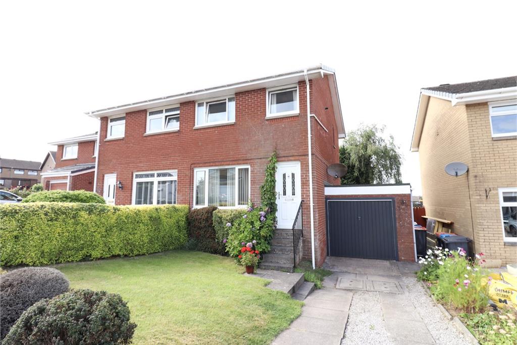 The property is set within a peaceful and desirable cul-de-sac in Georgetown, backing onto a spacious park. Georgetown offers many local amenities such as a Primary school, shop, health centre, pharmacy and library. Dumfries town centre is located a few miles distant which offers amenities commensurate with a town of its size. A bus stop is located close to Cherry Lane. Immaculately presented 3 bedroom semi-detached property with both front and rear gardens, single garage and driveway. The property boasts light filled rooms with the rear enjoying views over the adjoining park. There is double glazing and gas central heating throughout with a gas fire in the lounge A bright entrance hall gives access to the lounge on the left and the stairs to the first floor. The kitchen diner is access from the lounge and has direct access to the rear garden. Upstairs there are two double bedrooms and one single/box room served by a family bathroom. Outside there are well kept gardens to the front and rear with a single attached garage. Ground Floor Entrance Vestibule part obscure glazed external front door into entrance hall; obscure glazed door and panel to side into lounge; carpeted stairs to first floor; coat hooks; smoke alarm; radiator; fitted carpet. Lounge Good sized room with large window to front; gas fire set in polished stone hearth and surround with wooden mantle; door to kitchen diner; television connection point; 2 x wall lights; Openreach connection point; smoke alarm; carbon monoxide alarm; radiator; fitted carpet. Kitchen Range of fitted wall and floor units with complementing worktops and tiled splashbacks; composite sink, drainer and mixer tap; indesit integrated oven; Siemens hob with concealed extractor hood; Logik washing machine; space for freestanding fridge freezer; 2 x windows to rear; part obscure external door to rear; door to under stairs cupboard housing meters and fuse box; British gas controls; smoke alarm; radiator; wood effect laminate flooring. First Floor First Floor Landing Landing lit by window to side; doors to bedrooms 1, 2 & 3, bathroom and airing cupboard housing Worcester boiler; hatch to attic; British gas thermostat; smoke alarm; carbon monoxide alarm; fitted carpet. Bedroom 1 Double bedroom with large window to front; range of built in wooden wardrobes with shelving and hanging space; television connection point; phone connection point; radiator; fitted carpet. Bedroom 2 Double bedroom with window to rear enjoying views over the park; radiator; fitted carpet. Bedroom 3/box room Single bedroom with window to front; radiator; fitted carpet. Bathroom Modern suite of W.C., wash hand basin in vanity unit with cupboard underneath and opal electric shower over bath with waterproof wall panels to walls; obscure window to rear; radiator; fitted carpet. Garden Front Driveway to single garage with plant border to side. The front garden is laid to lawn with plant and shrub borders; steps to front door; paved path to gated rear garden. Rear Paving slabs from back door to pedestrian garage door, side gate and paved patio area passing area laid to lawn with rotary air dryer; plant and shrub borders with small trees; area laid to gravel; outside tap. Garage Pedestrian door and window to rear; up and over door to front; wall and floor unit; gas box; concrete floor. All blinds and curtains are included in the sale including some furniture. By appointment with the Selling Agents on 01556 504038.