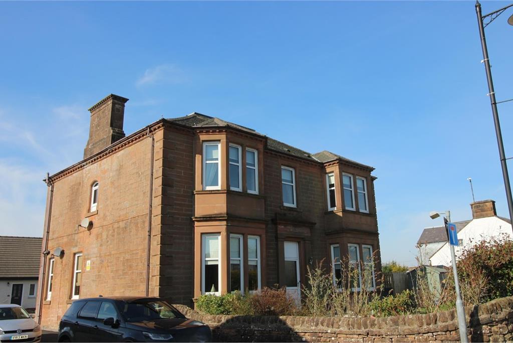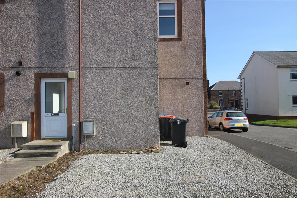 An opportunity has arisen to purchase a first floor flatted dwellinghouse in the highly desirable small town of Lochmaben. Situated just off the main street through the town, the property is in a small development near to the doctors surgery. Lochmaben is a popular historic village which boasts a primary school and nursery, shops, sporting and leisure facilities. A regular bus service offers easy access to Lockerbie or Dumfries where there is a wider range of facilities and access to the railway and motorway. The property itself benefits from double glazing and gas central heating. Entering the property at the rear of the building, the entrance area has a storage cupboard and the stairs leading up to the flat. At the top of the stairs there is a cupboard housing the central heating boiler. The utility room has plumbing for a washing machine. Entering into the hall, the main bathroom is on the right beside the third bedroom. Continuing on the right the galley style kitchen is next with fitted base and wall units, an integrated oven and hob and access to the attic space. The large lounge is to the front with bay window and electric fire. There is an area suitable as a dining area. The main bedroom is also to the front with a bay window and an en-suite bathroom. The second bedroom has wardrobes and an en-suite shower room. The outside has a garden / seating area to the side of the building and three allocated parking spaces. Viewing is highly recommended. Property is sold as seen. Home Report available Rating: C Council Tax Band: E