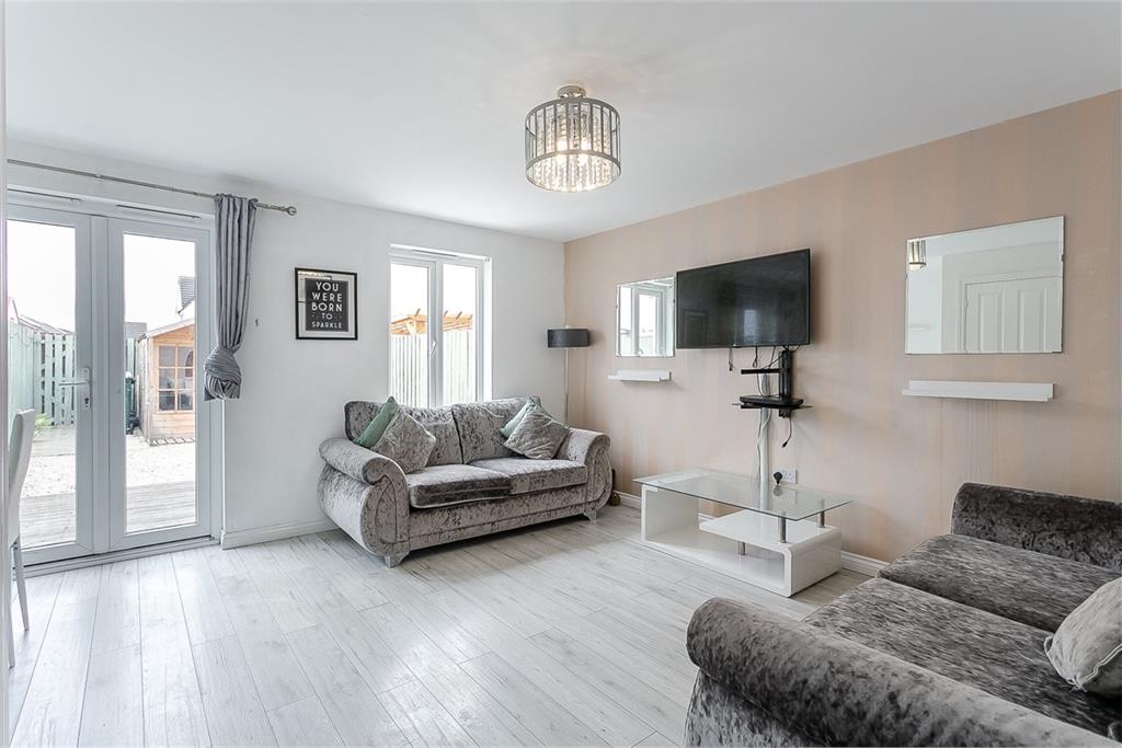 Situated within a family-friendly development in the coastal town of Prestonpans, this light-filled and well-presented three-bedroom mid-terrace home offers modern living with the benefit of private gardens and an allocated parking space. Comprises an entrance hall, living/dining room, kitchen, two double bedrooms, single bedroom, family bathroom and a ground-floor WC. Features include a modern fitted kitchen with a full range of integrated appliances, modern bathrooms and contemporary flooring. In addition, there is gas central heating, double glazing, and good integrated storage, including a loft. Externally, the property benefits from low-maintenance gardens to both aspects, including a patio and a generous summer house to the rear. A residential parking area is located adjacent to the terrace, and the development features landscaped grounds that include a children's play park. A welcoming entrance hall affords access throughout the ground floor, including a convenient WC. The spacious south-westerly facing living and dining area enjoys an abundance of natural light, enhanced by contemporary wood-effect flooring. Patio doors open directly onto the rear garden, while a built-in storage cupboard and wall-mounted TV point add further practicality and comfort. To the front, a stylish kitchen is fitted with modern units, stone-effect worktops with matching upstands, a sink with a drainer, and integrated appliances including a fridge/freezer, dishwasher, washing machine, an oven, and a gas hob with a stainless splashback. Upstairs, the generously proportioned main bedroom is set to the front and features a built-in wardrobe with plenty of space for additional freestanding furniture. Two further well-presented bedrooms lie to the rear, both benefiting from carpeted flooring and neutral decor. Completing the accommodation, the family-sized bathroom is fitted with a contemporary three-piece suite including a rainfall shower over the bath and tiled splash walls. Factor Fees: Charles White - approx £40 per quarter A 360 Virtual Tour is available online.