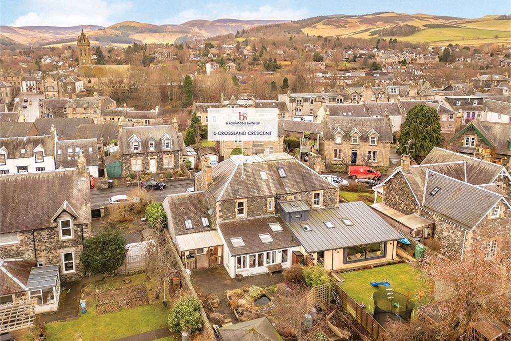 Welcome To Flowerdale, 6 Corssland Crescent, PeeblesA rarely available semi-detached house which has been extended and upgraded to provide a unique four-bedroom family home, offering the sought-after combination of period architecture and modern interiors that boast a wealth of versatile space. Flowerdale is a late-Victorian semi-detached house that has large reception rooms, four bedrooms, two bathrooms, and a private studio. It features modern extensions to the side and rear, and offers lots of space for families. The interiors also enjoy period details and sophisticated decoration, whilst outside there is private parking and mature gardens. Located in the Peebles conservation area, the property is set on a quiet crescent close to the centre of the town, in one of the most sought-after residential areas. Altogether, the result is an outstanding home that will be in significant demand. Take A Look Around Inside, you are greeted by a tiled vestibule and a hall, characterised by a delightful archway and wooden floorboards set against neutral décor. It sets the tone for the exquisite interiors to follow. With eye-catching original features, the living room is the embodiment of refinement. It features detailed cornice work and ceiling rose, classic wall panelling, and heritage-style twin sash windows, flooding the room in southerly light. Subtle décor and wooden floorboards complete the beautiful aesthetic, along with a black slate mantelpiece inset with a cast-iron gas stove. A modern family/formal dining room provides a second reception area that is also spacious and light filled. Perfect for dinner parties, it has eco-friendly bamboo flooring and French doors to the rear garden – a wonderful backdrop for meals. Head On Up On the first floor off a landing with fitted library shelving, there are three bedrooms. These include the large principal suite which overlooks the rear garden. Elegantly presented and laid with a bamboo floor (like the landing), this bedroom enjoys a recess with display shelving and a large fitted wardrobe, part of which cleverly leads to an en-suite shower room. At this level, there is also another spacious double bedroom and a versatile single bedroom/study/office with original window shutters. Another spacious double bedroom occupies the entire second floor. Fronted by a dormer window, it affords wonderful views to the Manor Hills. It also incorporates built-in shelving and clothes hanging space, with substantial under-eaves storage accessed through two half-height doors. Tour The Grounds Flowerdale has a garden to the southeast-facing front which has a low-maintenance design and mature planting. It also incorporates a driveway for private parking. A more substantial garden is to the rear, which is fully enclosed by original whinstone walls and a pine-planked divide. Arranged around a charming pond, it comes alive with vibrant colours thanks to established (bee-friendly) planting beds, creating a lush environment for relaxing and dining on the patio. In addition, there is a summerhouse used as a garden office/potting shed. It can connect with the home’s Wi-Fi, and is fully insulated, coming complete with lighting and power sockets. The Details The property has gas central heating (via a combi boiler with Nest wireless control) and underfloor heating in the studio. All windows are double-glazed and the house is insulated. It is also fitted with high-capacity broadband as well as a fire and smoke alarm system (complaint with the latest regulations). Tell Us About: Peebles Nestled in the Tweed Valley within the Scottish Borders, the charming Royal Burgh of Peebles is a historic and picturesque town. The town has been recognised as the ‘Top Independent Retailing Town in Scotland’ with a wealth of independent shops as well as a handful of high-street supermarkets, including a Tesco superstore, banks, and a post office. Peebles’ catchment area encompasses some highly-regarded schooling, from nursery to secondary level. Peebles is also a popular Scottish Borders retreat for commuters, located just over 20 miles from Edinburgh city centre and within easy commuting distance from the city bypass, airport and motorway network.