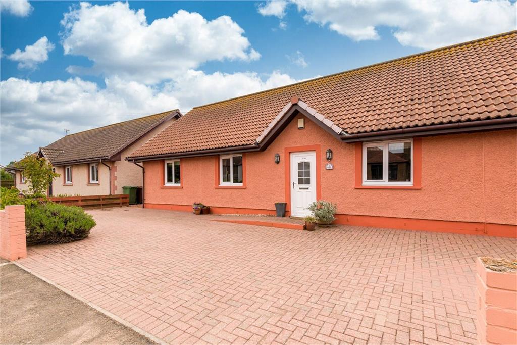 Enjoying a prime position in coastal Dunbar, just a short walk from the harbour, schools, and local amenities, this four-bedroom bungalow offers an ideal setting for family living. A sizeable brick-paved garden and driveway lead to the front door and into an elegantly decorated hallway. Featuring wood-inspired flooring, soft neutral tones, and ambient lighting, this inviting space exudes a warm ambience. Moving through the home, glazed French doors open into a bright and spacious south-facing sitting room, where French doors and flanking windows flood the space with natural light. Stylishly appointed with muted wall finishes and wood-effect flooring, the room enjoys a serene outlook and a seamless connection to the garden, making it an ideal setting for relaxation and entertaining. Directly opposite is a sizeable and well-appointed dining kitchen. U-shaped in design with a breakfast bar offering a thoughtful divide between it and the dining area, the kitchen showcases rich wood-effect wall and floor units, smooth black worktops, and high-spec integrated appliances including a striking black range cooker and stainless-steel extractor hood. An adjacent utility offers additional storage and external access. Positioned at the opposite end of the home, the principal double bedroom is a tranquil retreat. With west-facing French doors opening to the garden, this space accommodates a comfortable seating area and built-in wardrobes. Its en-suite shower room is finished in a sleek monochrome palette, with black sparkle quartz wall tiling, a hidden cistern WC, and a washbasin built into vanity. Three further double bedrooms are bright and well-presented, with two featuring built-in wardrobes. Completing the interior is a stylish family bathroom, equipped with a shower enclosure, bath, washbasin built into vanity, hidden cistern WC, and a chrome towel radiator. In addition to the accommodation already outlined, there is a large attic space which could offer scope to extend subject to the usual consents. Externally, the south-facing garden has been thoughtfully designed with a lush lawn surrounded by borders, trees, paving, and a decking area for alfresco dining and entertaining. The front driveway offers generous parking for several cars.