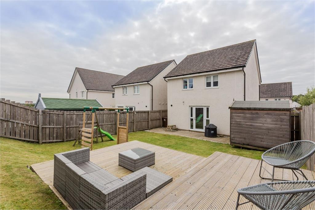 Situated in this much admired development by Barratt Homes is this stunning one of only six Craigends style three bedroom detached villas, beautifully presented internally with private garden to the rear. Accessed via a monobloc private lane of only four homes the property has accommodation comprising of a reception hallway with WC, front facing lounge that has a walk-in storage cupboard and to the rear a stunning dining kitchen with a single Upvc door that leads to the patio and great proportioned lawn garden. The dining kitchen itself has ample wall & base units with integrated appliances that includes oven, hob & extractor hood. There is a separate utility cupboard under the stairwell with plumbing. A panelled stairwell adds great character to this lovely home and leads to the first floor where there are three bedrooms, principal with en-suite shower room and built-in fitted wardrobes as does bedroom two. Completing the accommodation is the house bathroom with bath, WC and wash hand basin. Externally there is a monobloc driveway adjacent and to the rear a private garden with lawn and patio all bordered by timber fencing. The specification includes gas central heating & double glazing. C Dimensions Lounge 12'10 x 11'9 Dining Kitchen 18'9 x 10'1 6'2 x 3'8 Principal Bedroom 12'9 x 11'4 face of wardrobes En-suite 7'5 into shower x 4'7 Bedroom 2 14'3 x 10'5 Bedroom 3 10'2 x 8'2 Bathroom 7'1 x 6'2