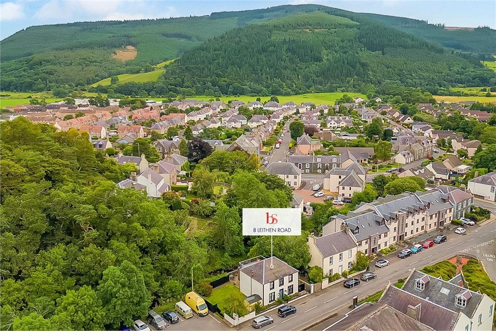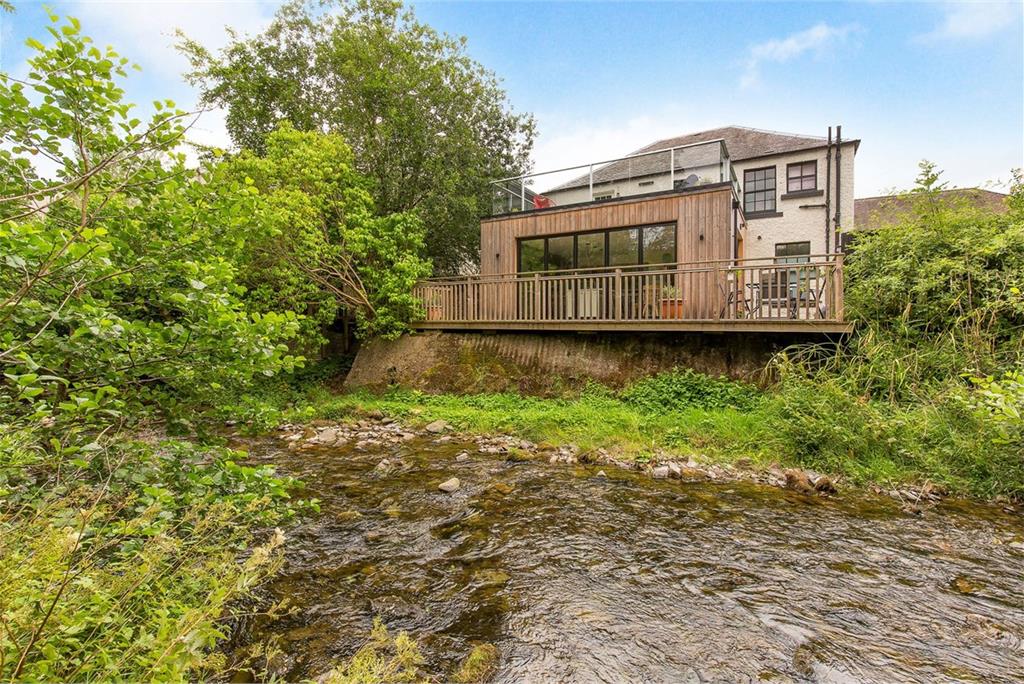 Welcome to 8 Leithen Road, Innerleithen Representing a truly unique and stylish home in Innerleithen, this traditional detached house has been tastefully and sympathetically modernised in recent years, offering the perfect blend of contemporary fixtures and fittings and preserved period features. The house accommodates a large open-plan breakfasting kitchen, dining room, and family room, a separate living room, four bedrooms, a study, and two bathrooms. Externally, it boasts a large roof terrace with lovely river views, a wraparound terrace, a neat garden, and it benefits from access to unrestricted on-street parking. Take A Look Around An entrance vestibule welcomes you into the home, leading through to a hallway with an under-stair storage cupboard. On your left, you step into a living room, attractively presented with two-tone décor, warm wood flooring, and exquisite cornicing and a ceiling rose. A beautiful fireplace (flanked by an open Edinburgh press) creates a focal point around which furniture can be arranged. Across the hall, the sociable heart of the home awaits: the open-plan breakfasting kitchen, dining room, and family room, with contemporary décor and herringbone LVT flooring. The kitchen is very well-appointed with a full wall of stylish grey-green coloured cabinets and quartz worktops, alongside a central breakfasting island. A delightful purple ESSE range cooker takes centre stage in the kitchen, with neatly integrated appliances comprising a fridge/freezer and a dishwasher. There is ample space for a large dining table and chairs, perfect for sit-down family meals and dinner parties. Furthermore, the kitchen has wide bi-folding and French doors opening onto the wraparound deck – ideal for summer entertaining and barbecues. The adjoining family room has chic bold décor and could be utilised as a relaxed lounge/TV room, a teenager’s den, or a children’s play room. Head On Up The home has four well-proportioned double bedrooms, all individually decorated and retaining their original cornicing. Three are carpeted for optimum comfort underfoot, with one enjoying handsome wood flooring. The principal bedroom boasts exclusive access out to a large roof terrace, with glass balustrades overlooking the garden, offering an ideal space for morning coffee or an evening drink as the sun sets. There is also a study, offering a quiet area for those who work or study from home. Finally, the house has a shower room on the ground floor and a bathroom on the first floor. The former comprises a deluxe walk-in enclosure with a rainfall showerhead, handset, and eye-catching tiling, a basin, a WC, and utility cupboards. The latter is traditionally styled and comes complete with a freestanding claw-foot rolltop bath, a WC-suite, a linen cupboard, and a clothes pulley. The home is kept warm by gas central heating and has partial triple glazing. Tour The Grounds Externally, in addition to the large roof terrace and wraparound deck, the home enjoys a tranquil riverside setting with access steps to the river and has a neatly lawned side garden with leafy trees and shrubs, and a shed for outdoor storage. Unrestricted on-street parking can be found on Leithen Road, and there is also a public car park adjacent with unrestricted parking. The sale of this property is not subject to an onward chain. The Details All fitted floor coverings, window coverings, light fittings, integrated kitchen appliances, and washing machine will be included. Tell Us About Innerleithen Lying close to the banks of the River Tweed and nestled amongst rolling hills, the former mill and spa town of Innerleithen enjoys an idyllic Scottish Borders setting. The town is served by a local supermarket, a library contact centre, a health centre, a pharmacy, a post office and several independent shops, including a bakery and a grocer. A selection of eateries is also on offer, whilst further amenities can be found a short drive away in the charming market town of Peebles. The town’s scenic surroundings provide endless opportunities for outdoor pursuits such as mountain biking, fishing, walking and cycling , while nearby Glentress Forest Park boasts a treetop adventure course. Innerleithen also hosts its own park and a local history museum at St Ronan's Wells. Primary and nursery schooling is provided locally at St Ronan’s Primary School, followed by secondary education at Peebles High School. Commuting to the capital takes approximately an hour by road, whilst Galashiels – located 20 minutes’ drive from Innerleithen – provides fast and frequent rail connections.